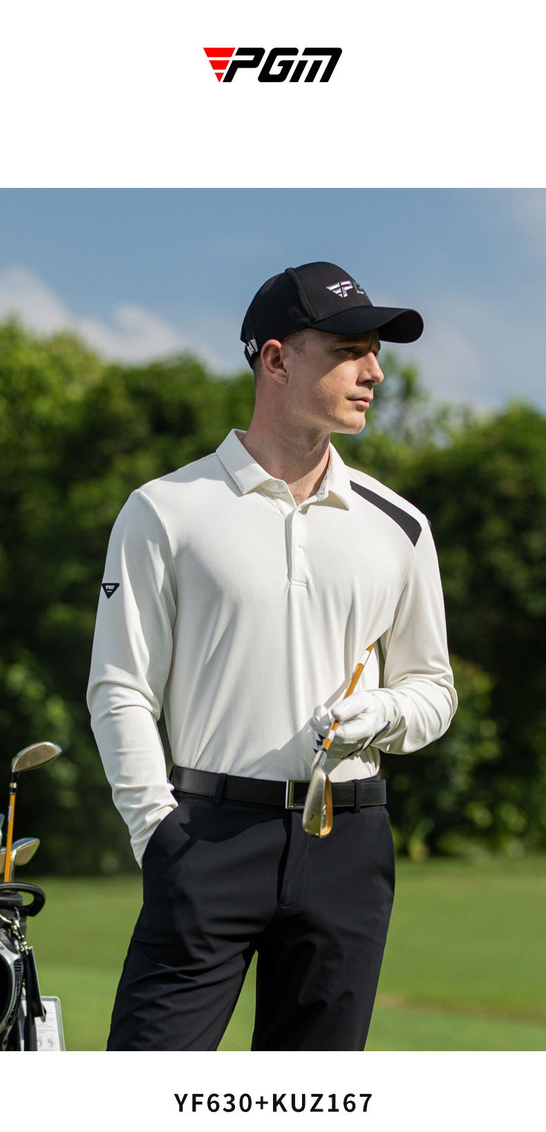 PGM 골프 의류 남성용 긴팔 티셔츠 가을과 겨울 스포츠 유니폼 대비 컬러 스티칭 옷 폴로 셔츠