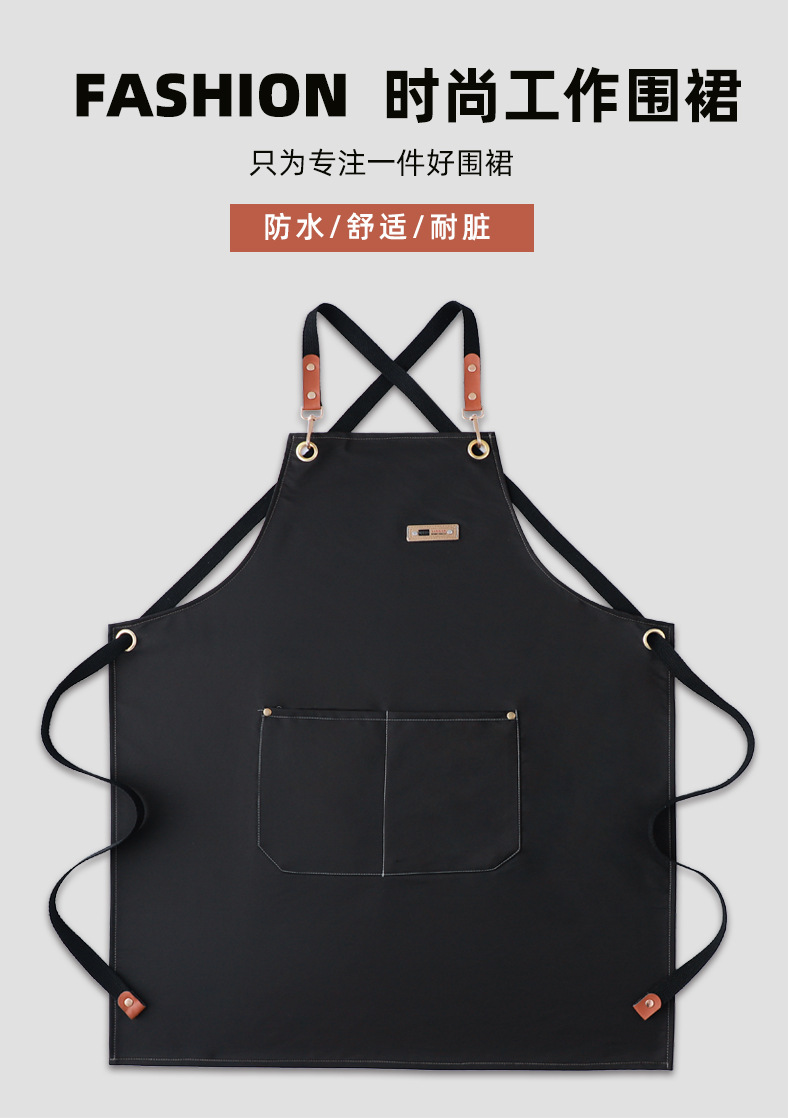 • 하이 엔드 3 층 방수 크로스 벨트 앞치마-블랙