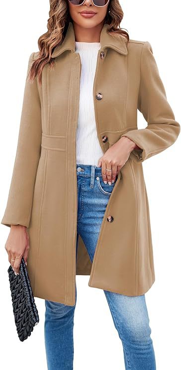 아마존 국경 간 신제품 여성의 우아한 싱글 브레스트 긴팔 라펠 겨울 코트 외장 안감이 있는 완두콩 코트스토어 가기