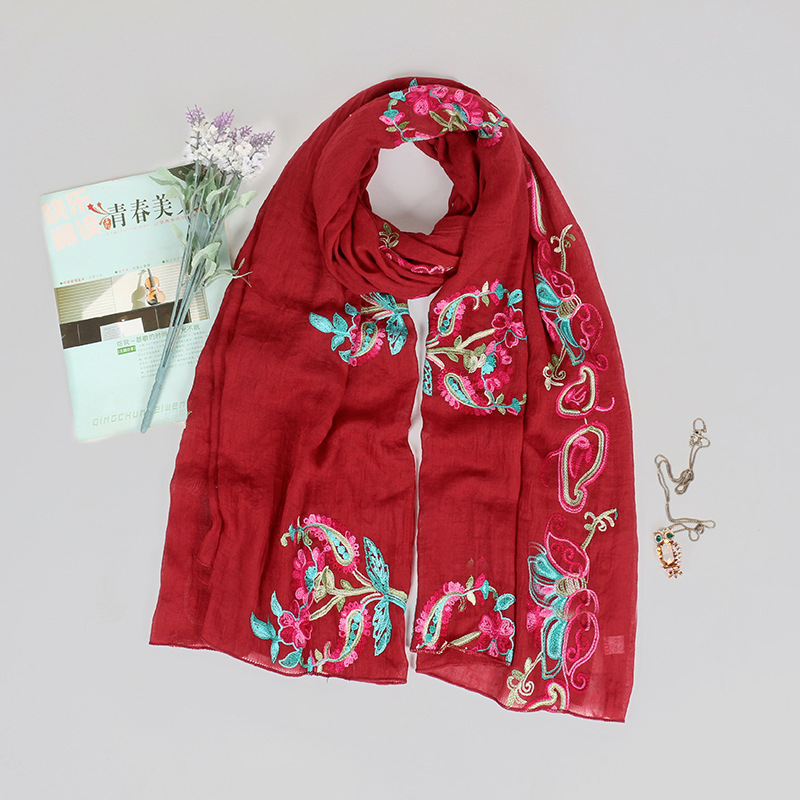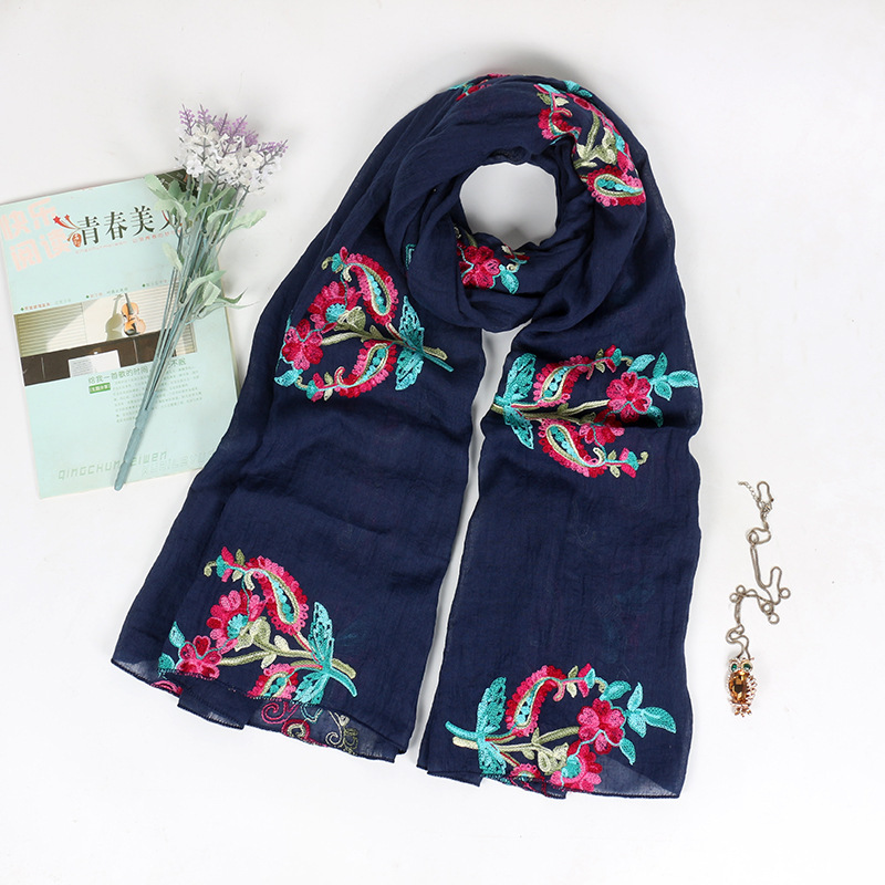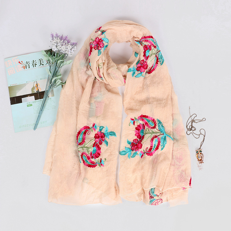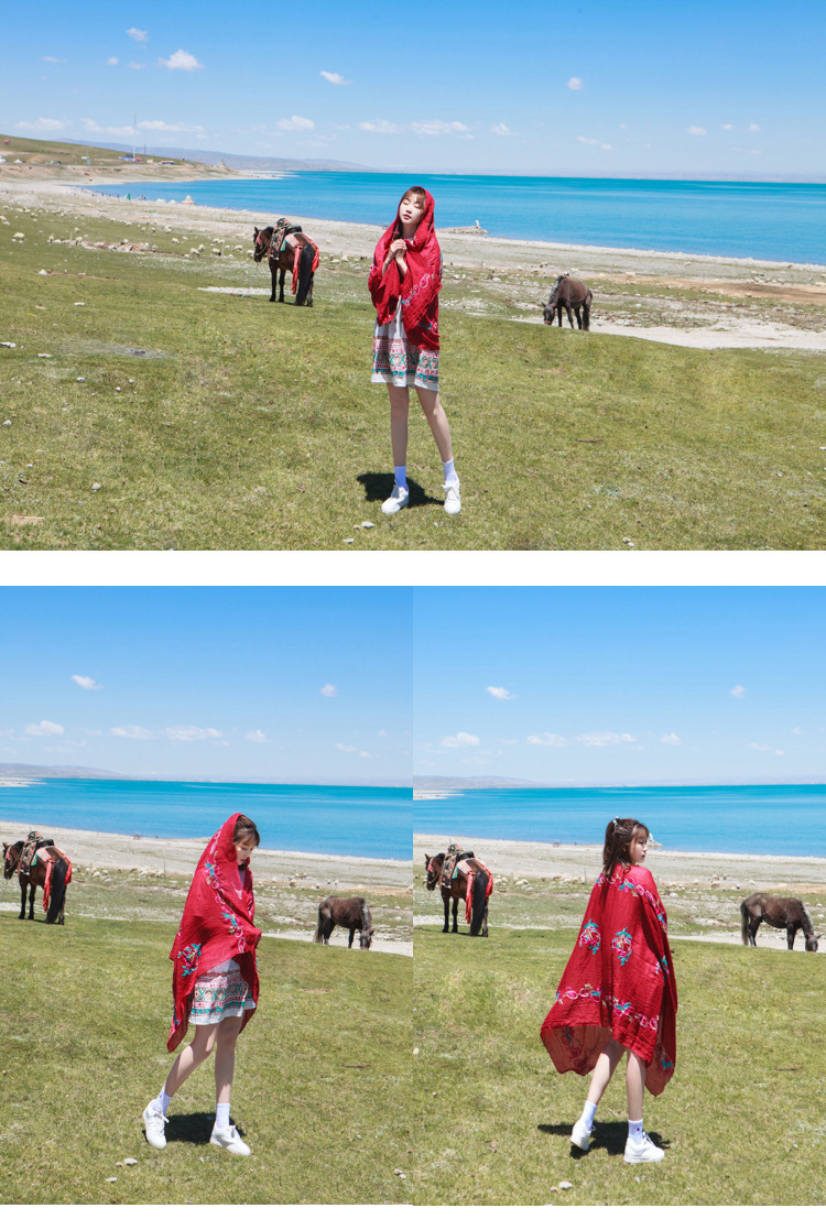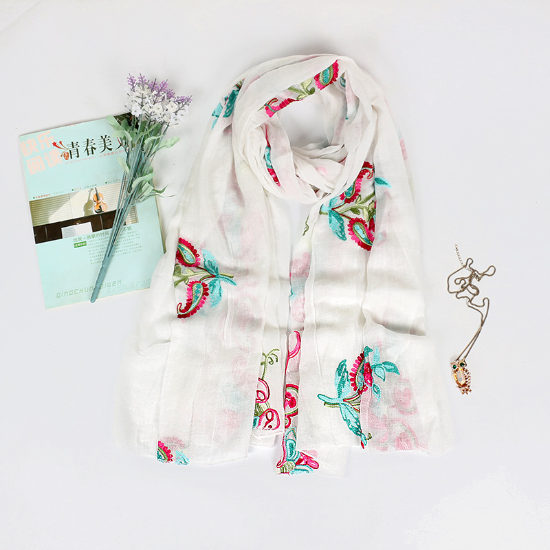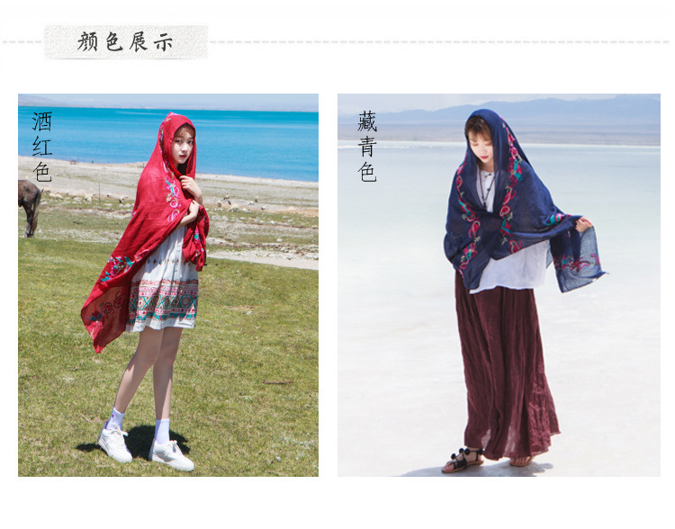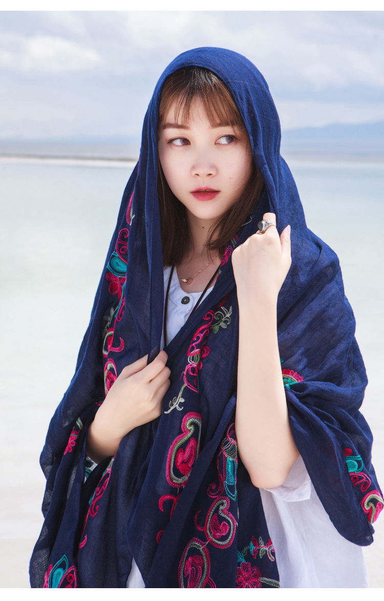 봄과 여름 고급 면 및 린넨 스카프 스카프 여성용 에스닉 스타일 대형 자외선 차단제 통기성 스카프 이중 목적 여름 큰 비치 숄