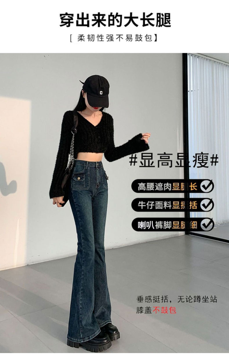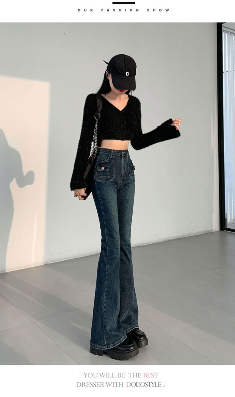 블루 그레이 슬림 핏 바지 아메리칸 스타일 멀티 포켓 틈새 디자인 마이크로 혼 호스슈 여성용 하이 웨이스트 스트레치 진스토어 가기