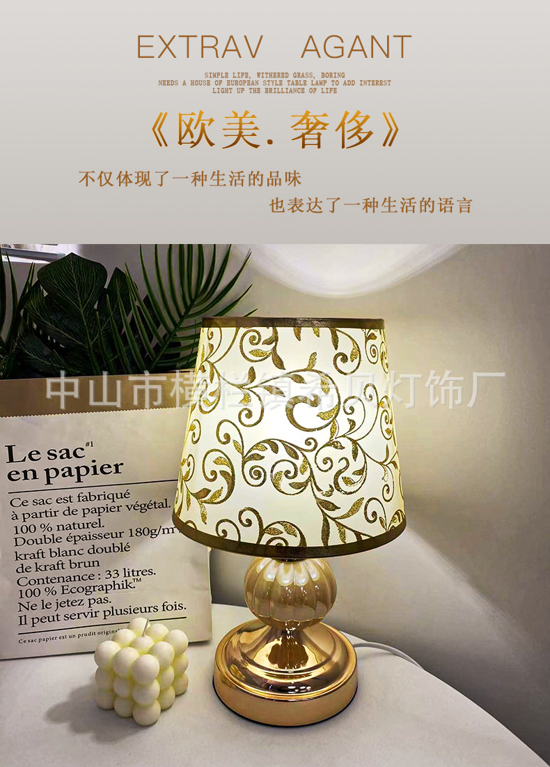 국경 유럽 복고풍 간단한 현대 침대 옆 램프 따뜻한 낭만적 인 창조적 인 미국 유리 장식 테이블 램프 제조 업체
