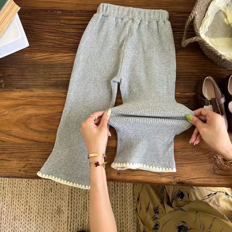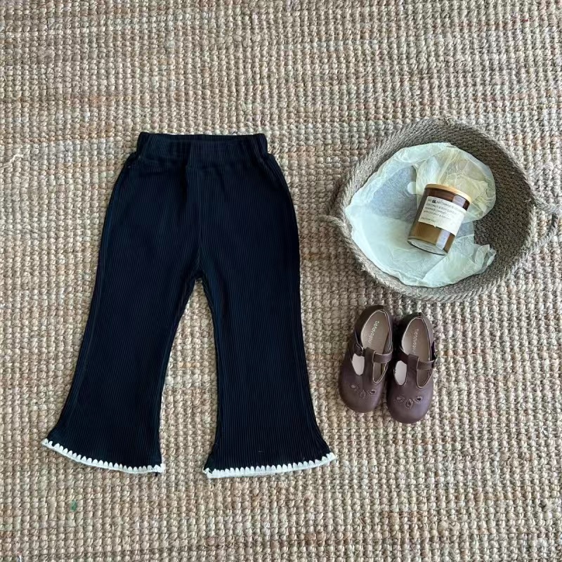 2024 새로운 가을 스타일 소녀 복고풍 슬림 피트 플레어 바지 어린이 베이비 스트레치 바지 한국 스타일 아동 바지스토어 가기