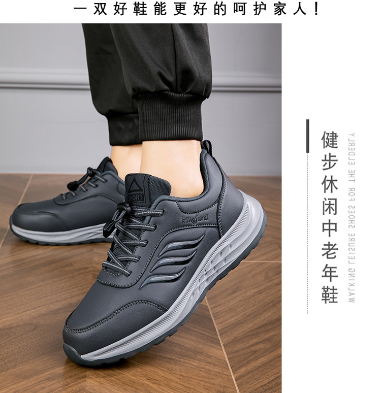 2023 가을과 겨울 노인 신발 넓어지고 뚱뚱한 여성용 중년 어머니 가죽 방수 운동화 미끄럼 방지 부드러운 밑창 가죽 신발