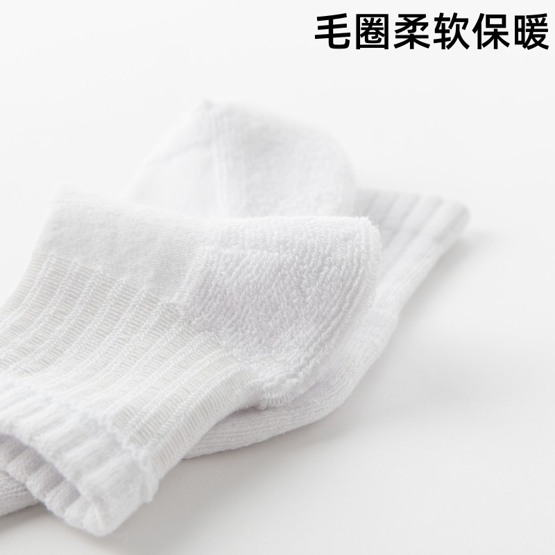 孩子的活力需要贴心呵护,白色毛圈儿童运动袜前来助力!独特的半拉毛工艺,让温暖不再过度,恰到好处地陪伴孩子的每一次活动。脚底拉毛,宛如温柔的拥抱,为孩子的每一步提供缓冲与舒适。而脚背平板,清爽透气,让汗水无处藏身。给孩子穿上这双袜子,让他们尽情释放天性