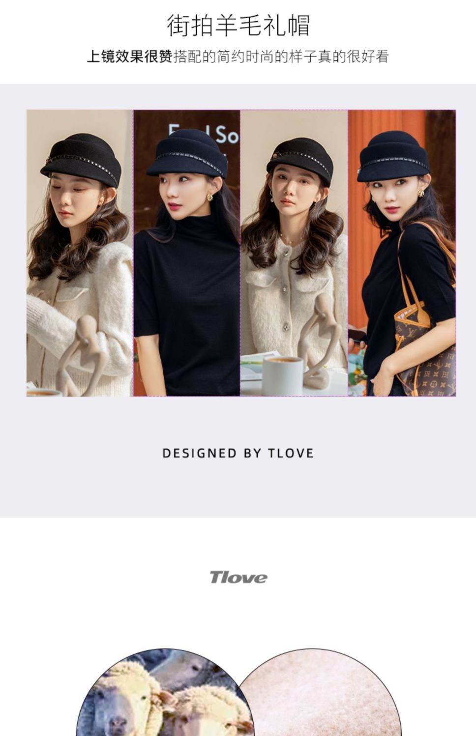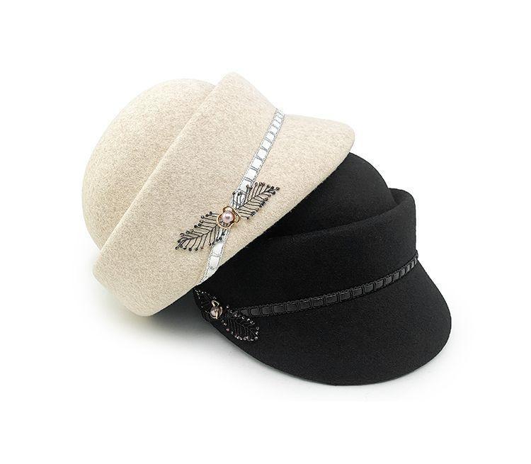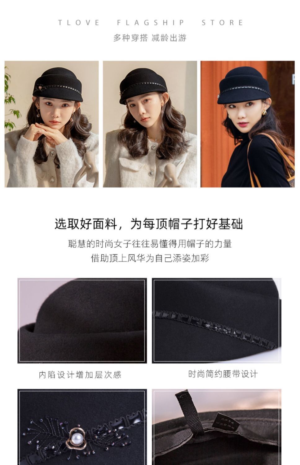 KingCamp 영국 복고풍 작은 탑 모자 짧은 챙 울 모자 여자의 가을과 겨울 패션 돔 트위드 승마 모자스토어 가기