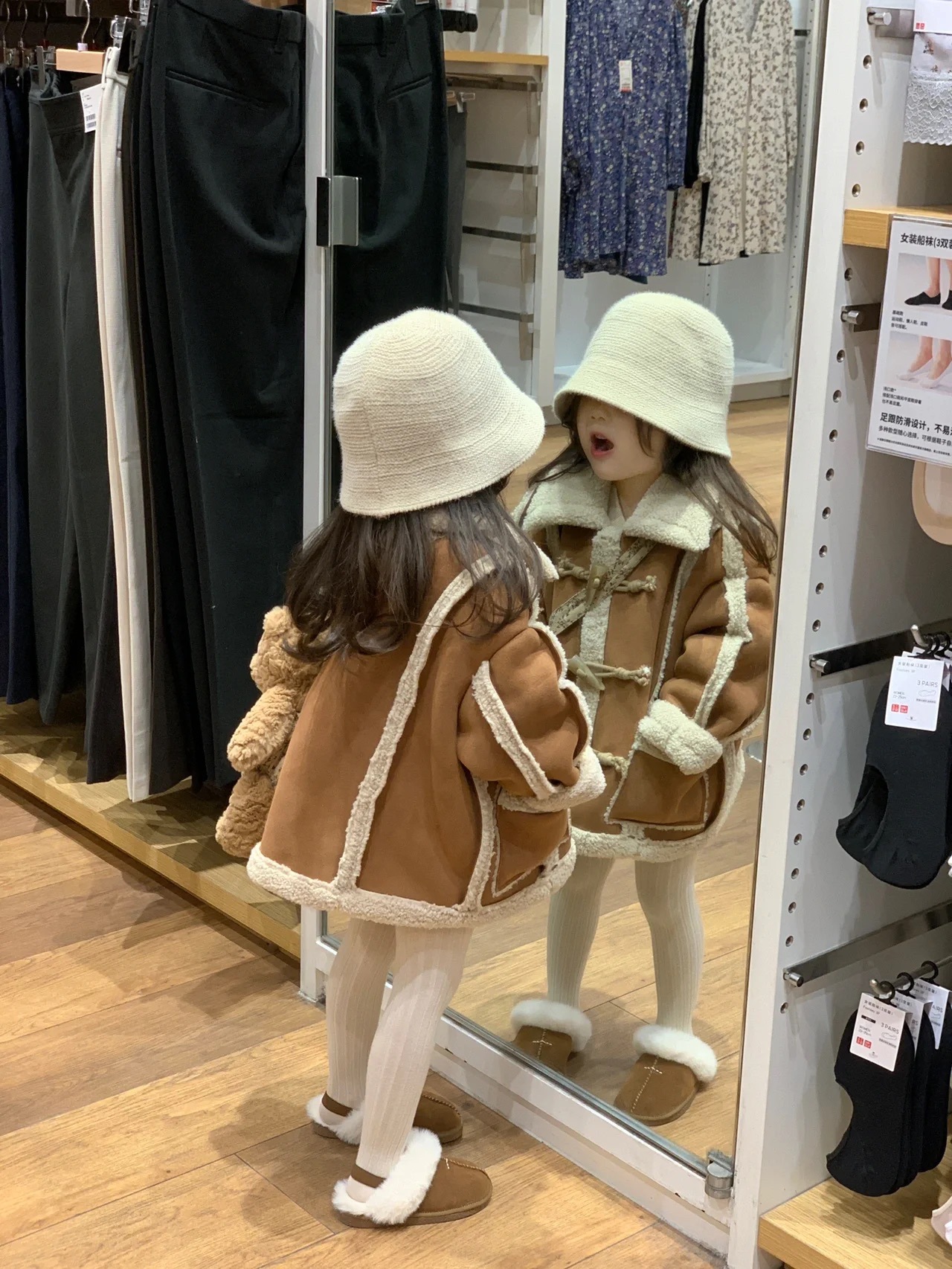 2023 겨울 두꺼운 공기층 밀 귀 합성 부드러운 왁스 양고기 양모 내부 cule 버튼 소년과 소녀를위한 따뜻한 재킷스토어 가기
