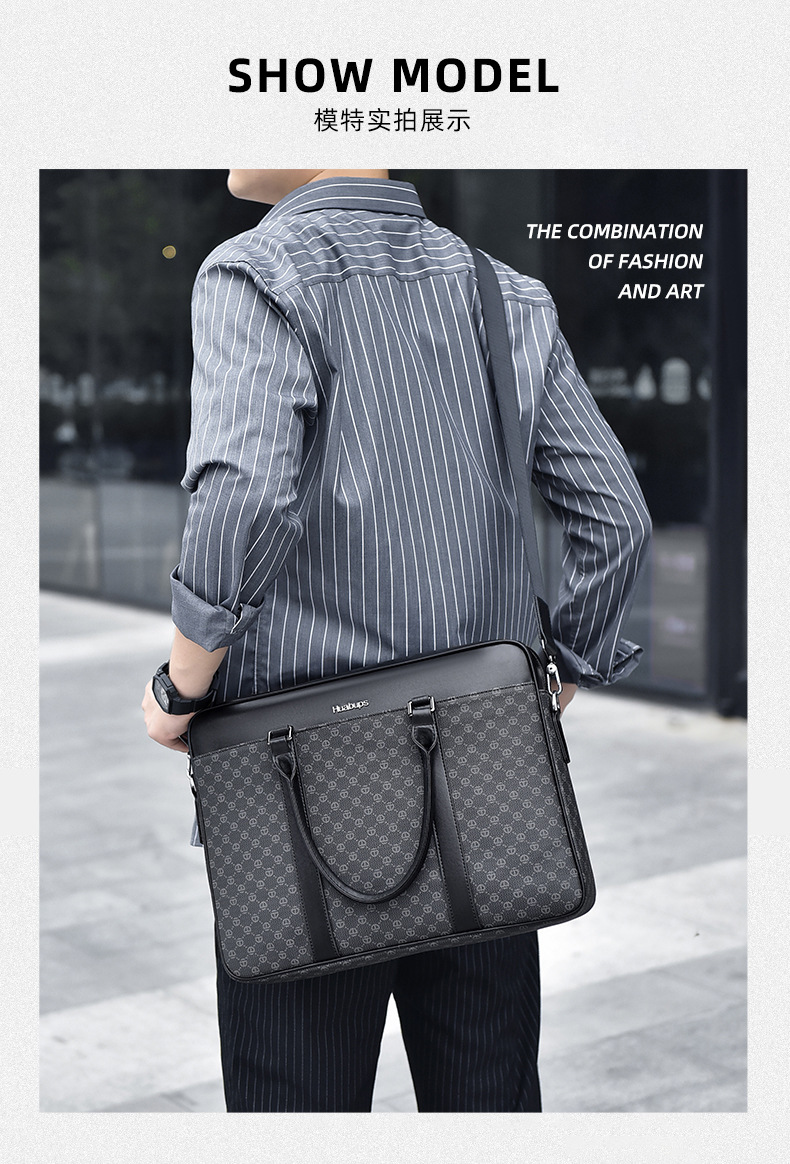 남자 가방 서류 가방 남자의 수평 비즈니스 핸드백 통근 대용량 숄더백 컴퓨터 가방 유행 남자의 가죽 가방스토어 가기