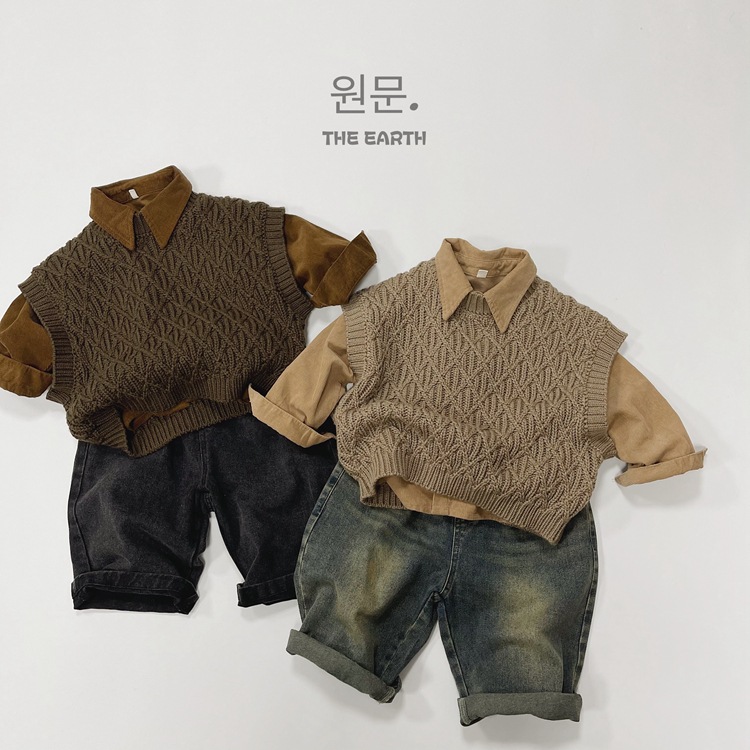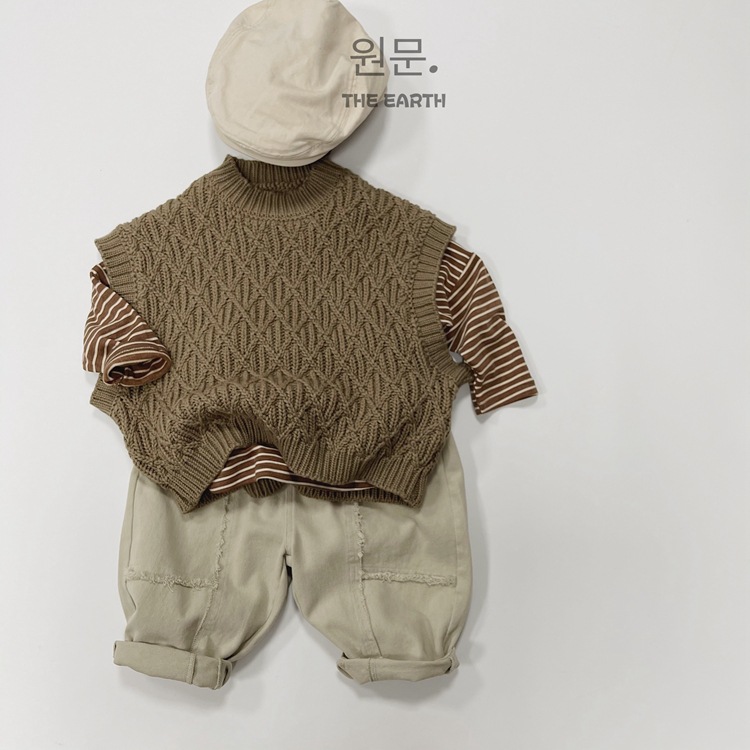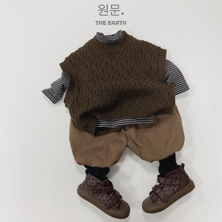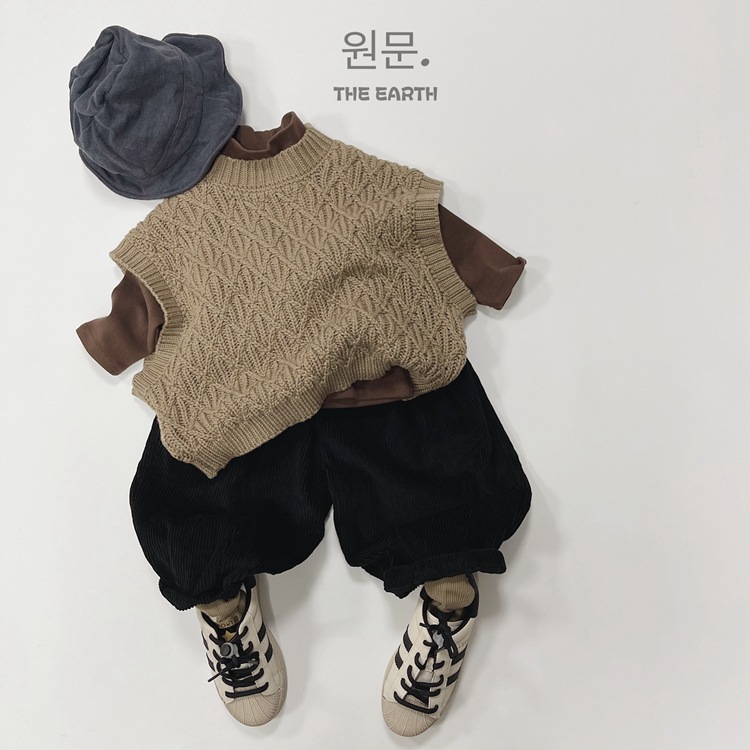 두꺼운 한국 아동복 어린이 스웨터 조끼 가을과 겨울 린넨 패턴 니트 스웨터 풀오버 양복 조끼