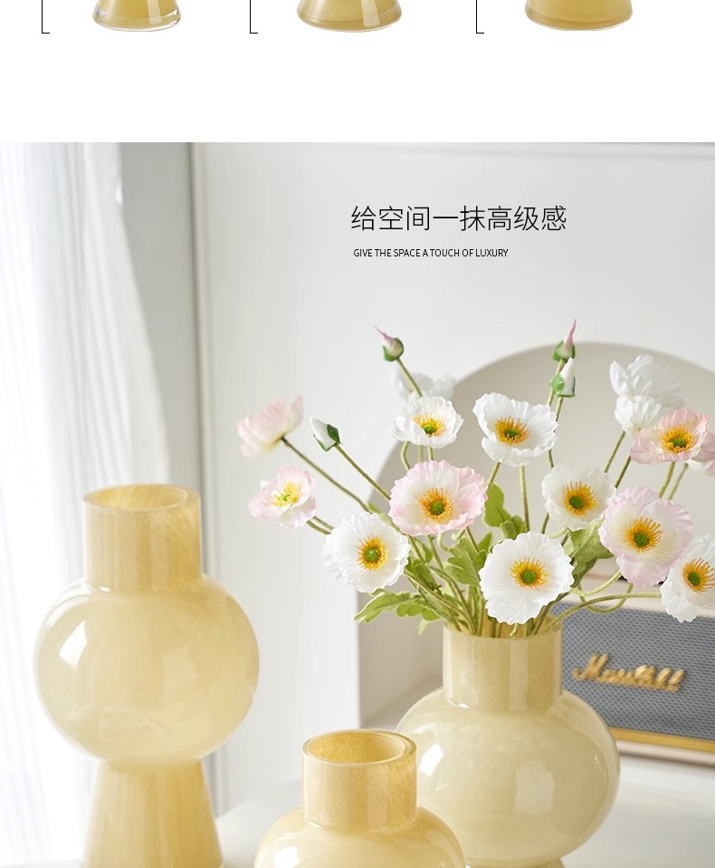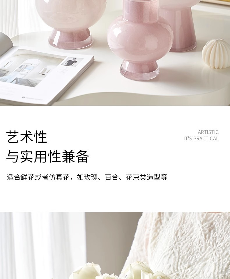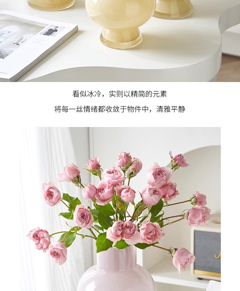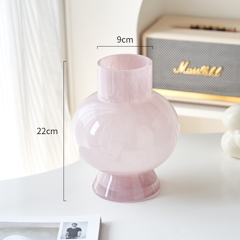 프랑스 중세 꽃병 고급 예술적 핑크 펜톤 유리 꽃꽂이 장식 거실 조명 고급 부드러운 장식