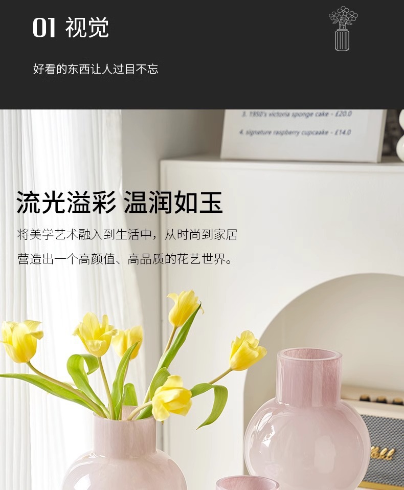 프랑스 중세 꽃병 고급 예술적 핑크 펜톤 유리 꽃꽂이 장식 거실 조명 고급 부드러운 장식스토어 가기