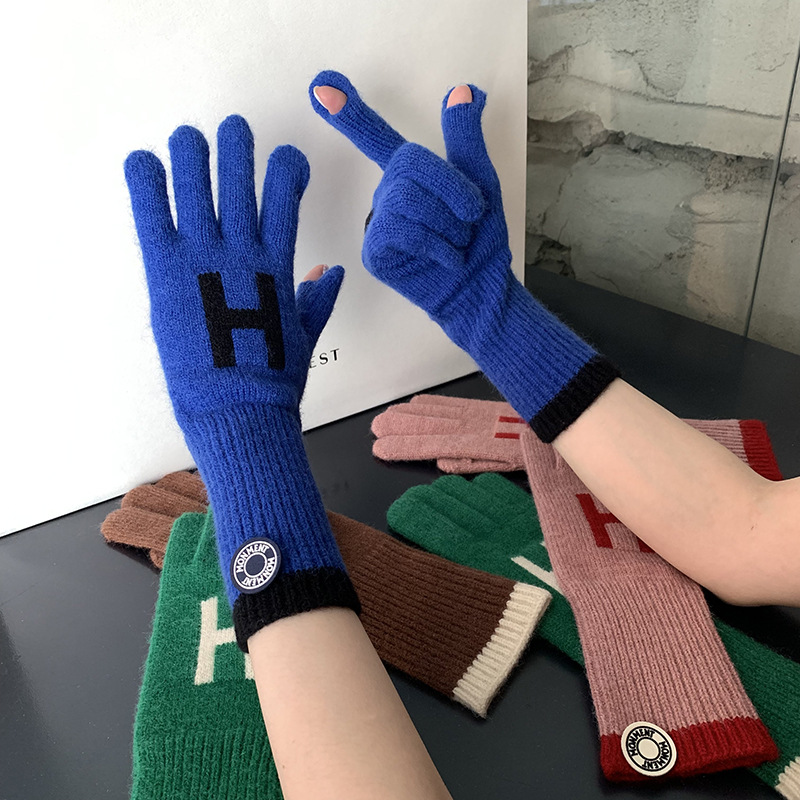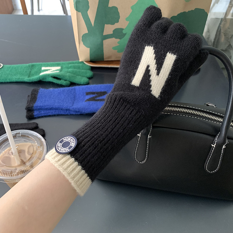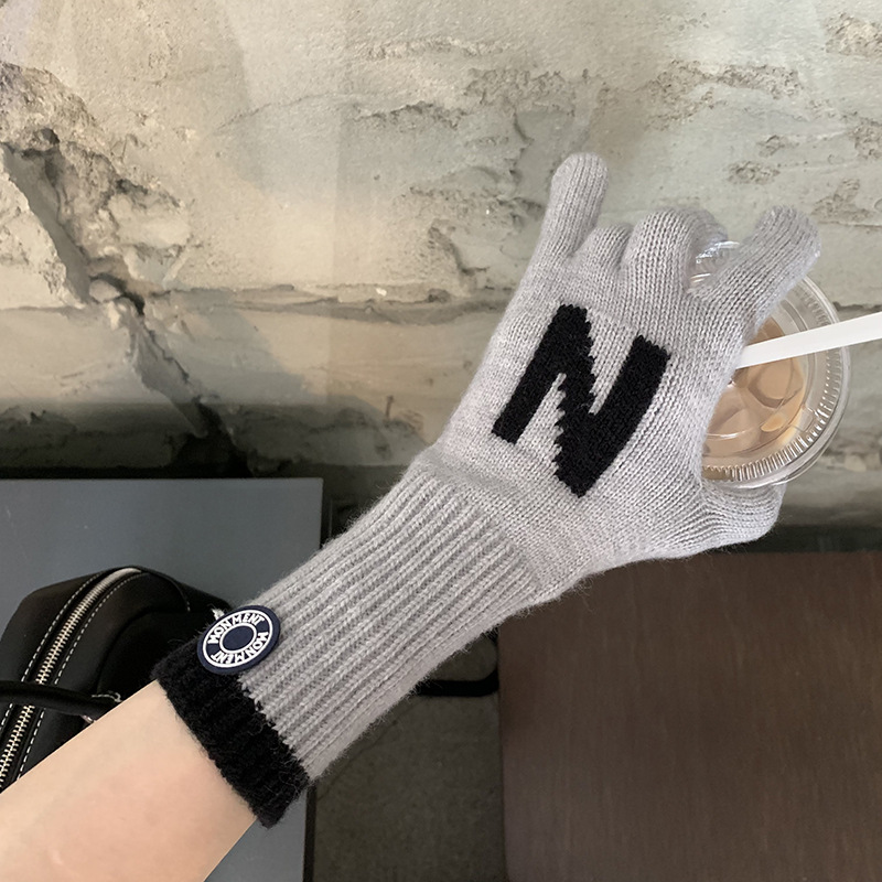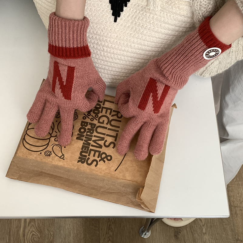 가을과 겨울 알파벳 장갑 대학 스타일의 새로운 일본과 한국 인터넷 유명인 커플을위한 따뜻한 달콤한 개인화 된 니트 장갑스토어 가기