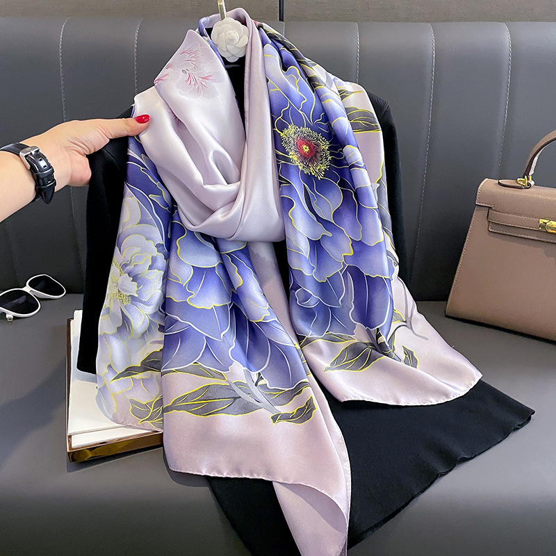 우아한 모란 스카프 여성의 가을과 겨울 따뜻한 실크 같은 우아한 스카프 얇은 모든 매치 넥 이중 목적 숄 스카프스토어 가기