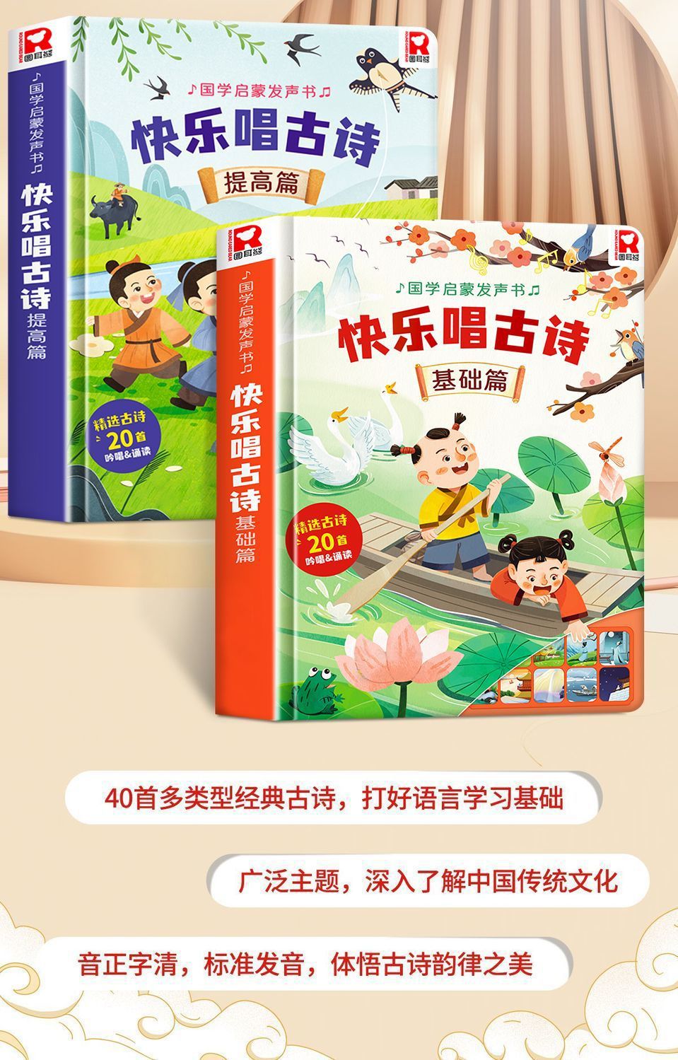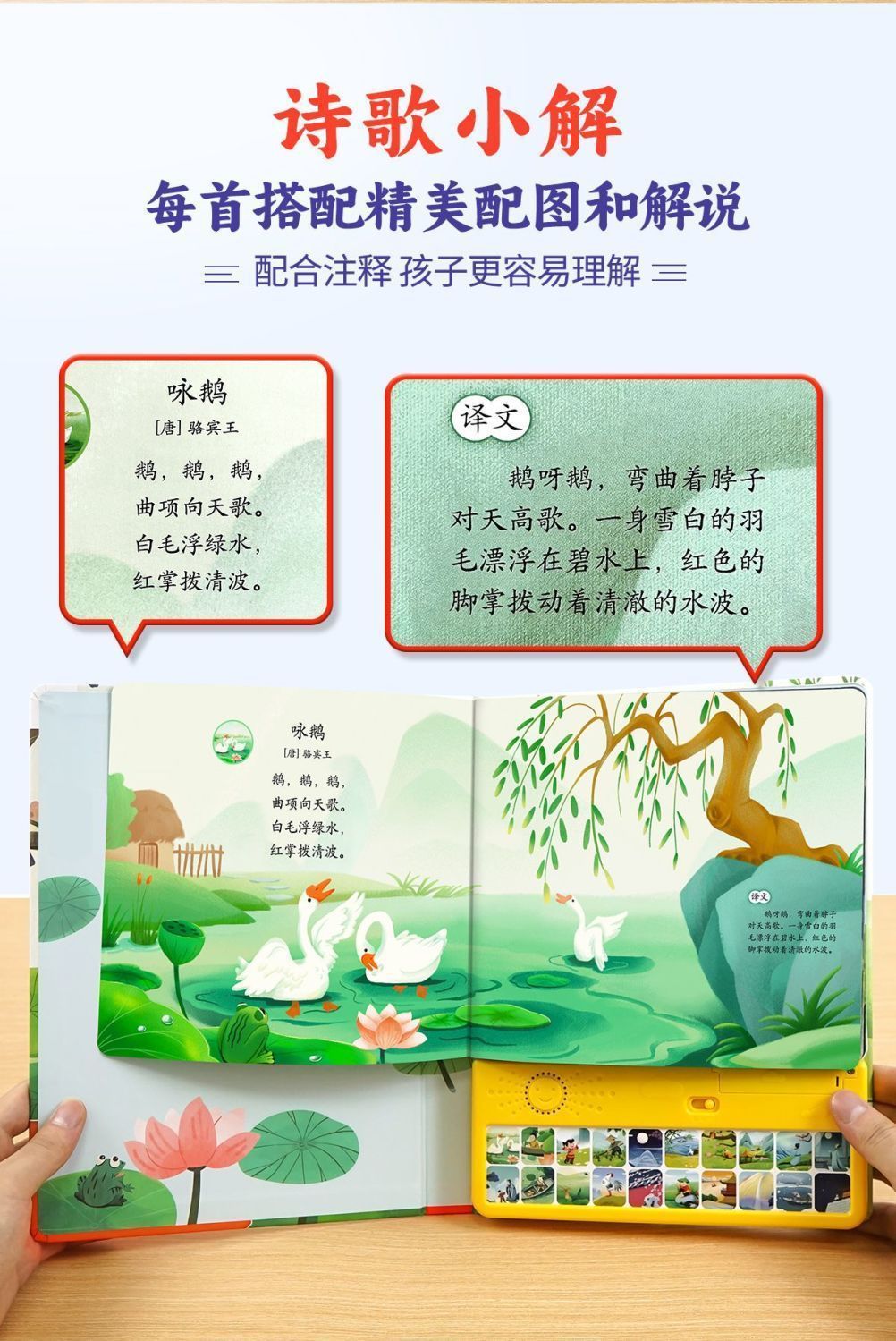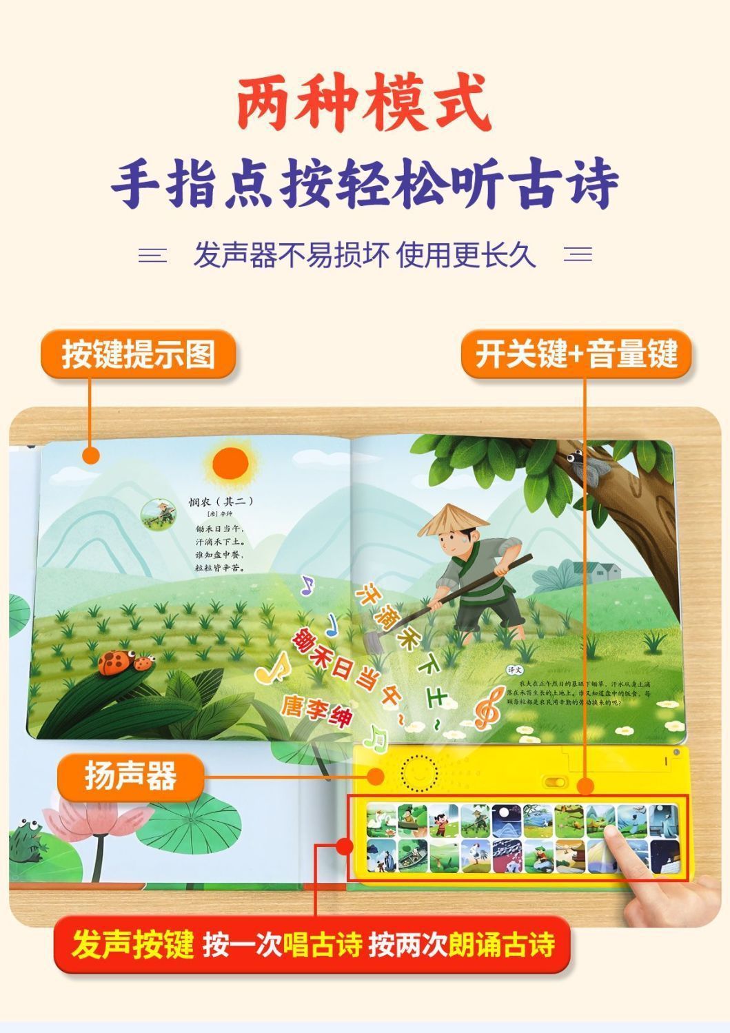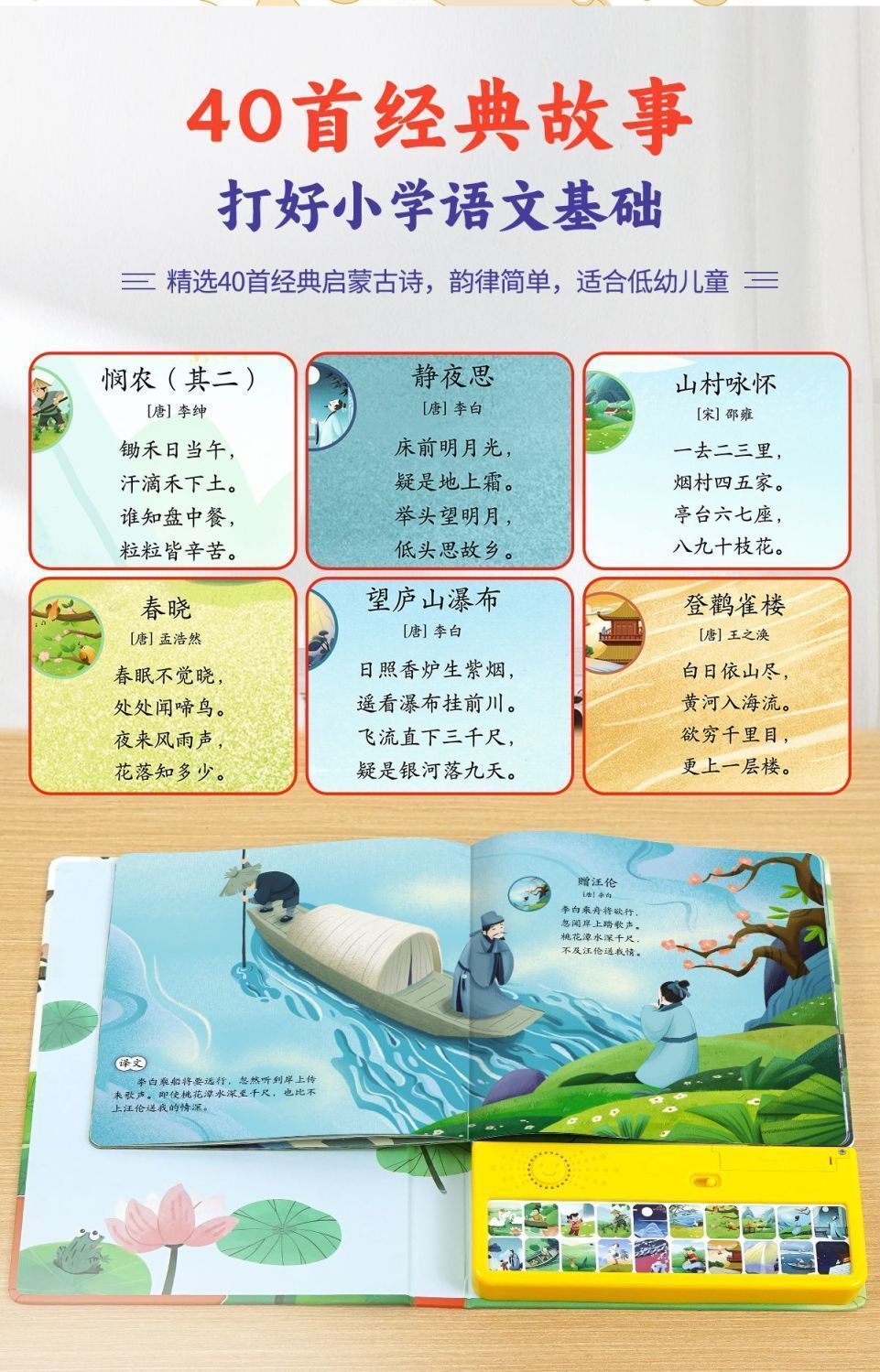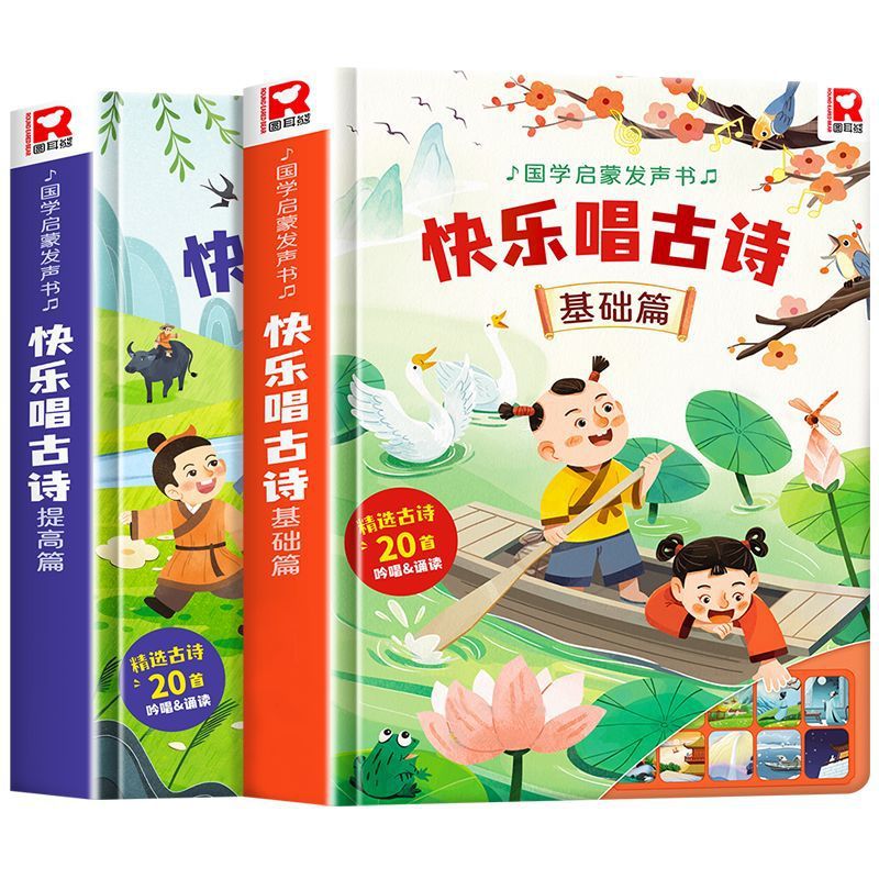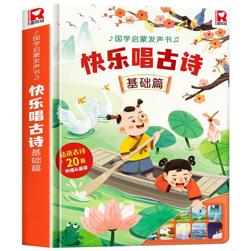 말하는 행복한 노래 고대시 음성 책 3-6 세 아기 조기 교육 읽기 음성 책 중국어 연구 계발 그림책