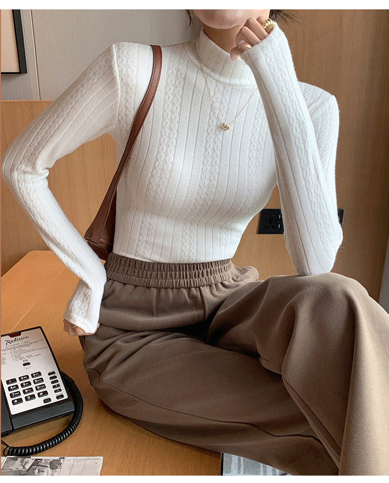 H332 가을 겨울 여성용 니트 스웨터, 하프 터틀넥 스웨터, 슬림 긴팔 미드 칼라 웜 탑