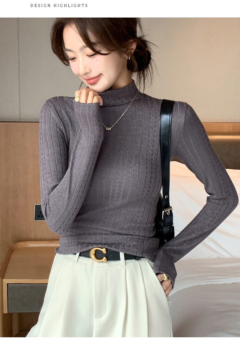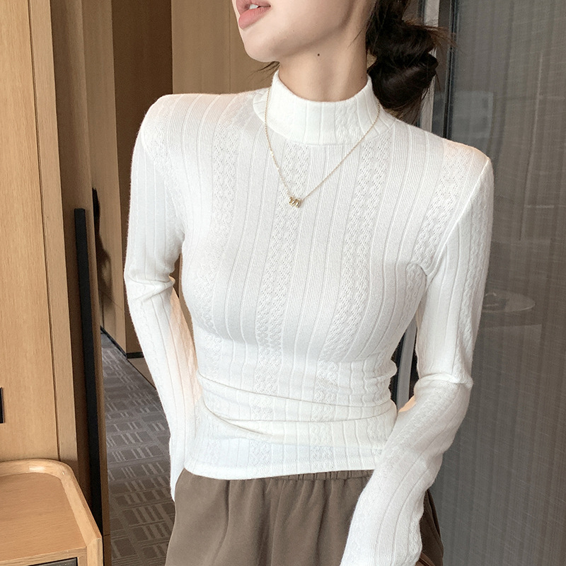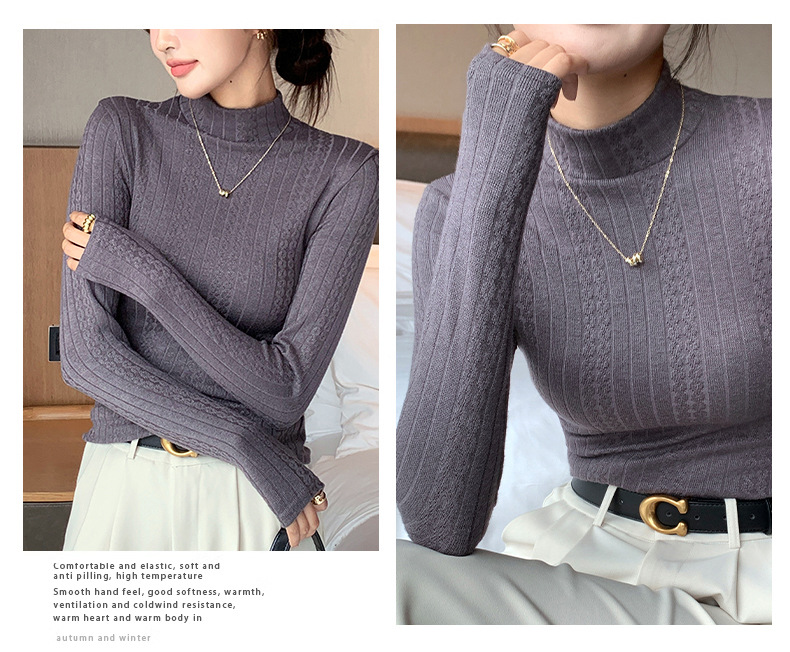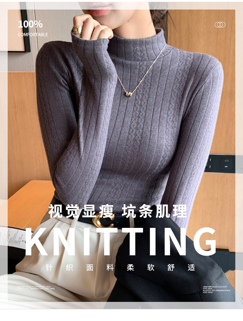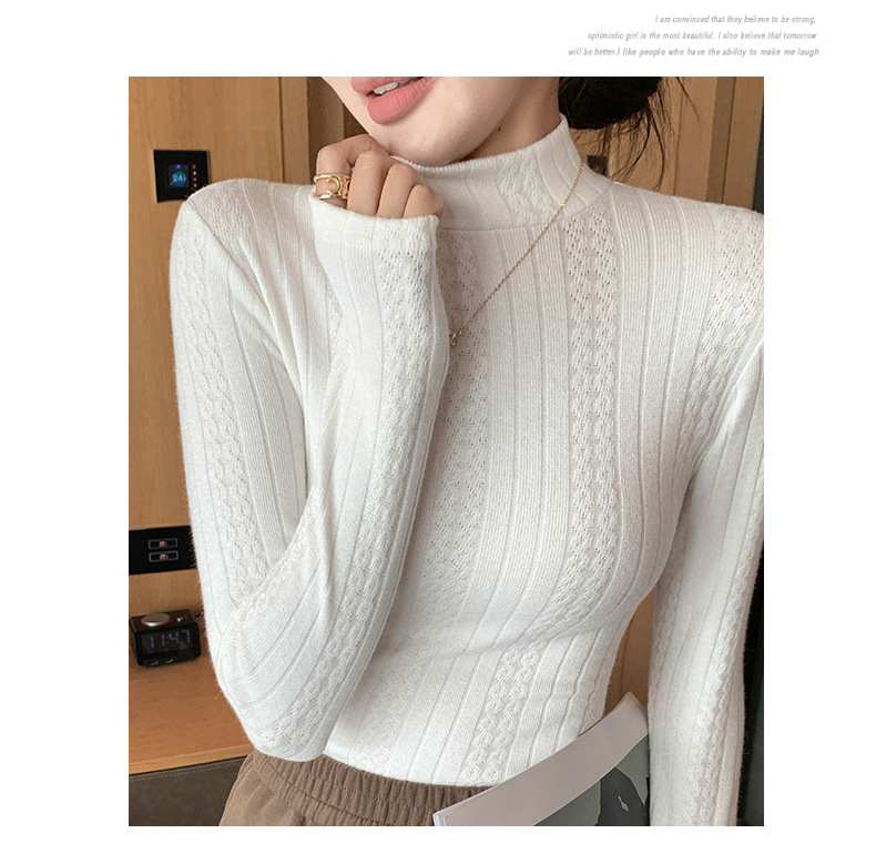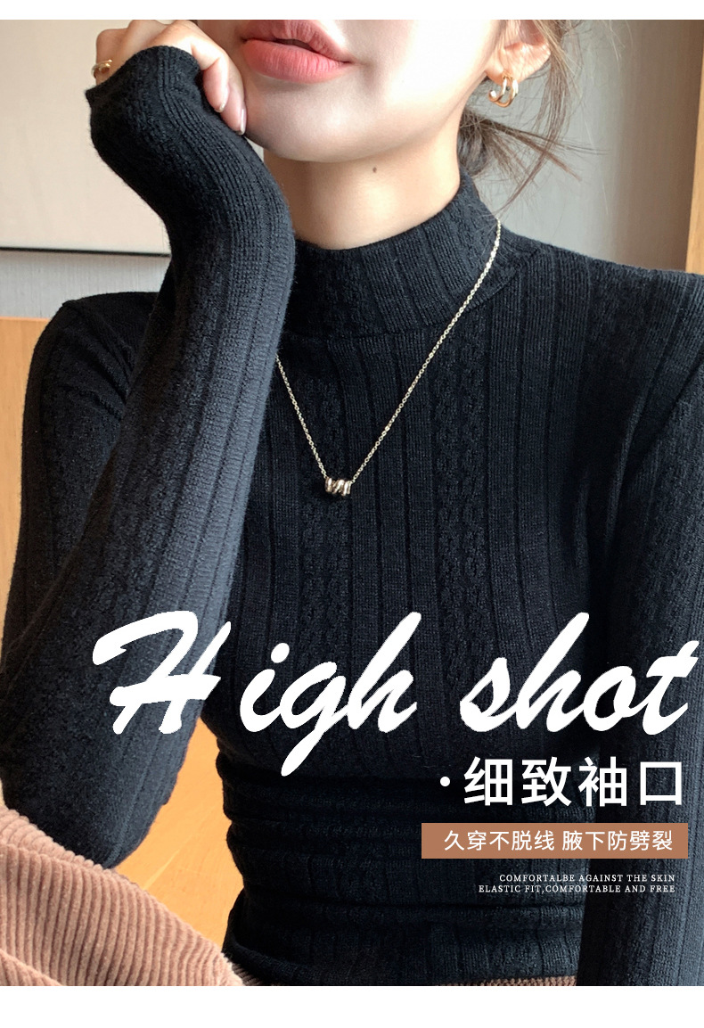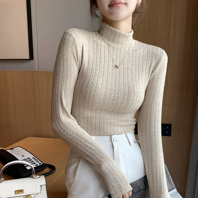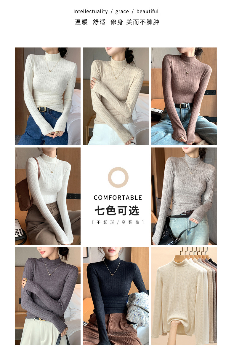 H332 가을 겨울 여성용 니트 스웨터, 하프 터틀넥 스웨터, 슬림 긴팔 미드 칼라 웜 탑스토어 가기