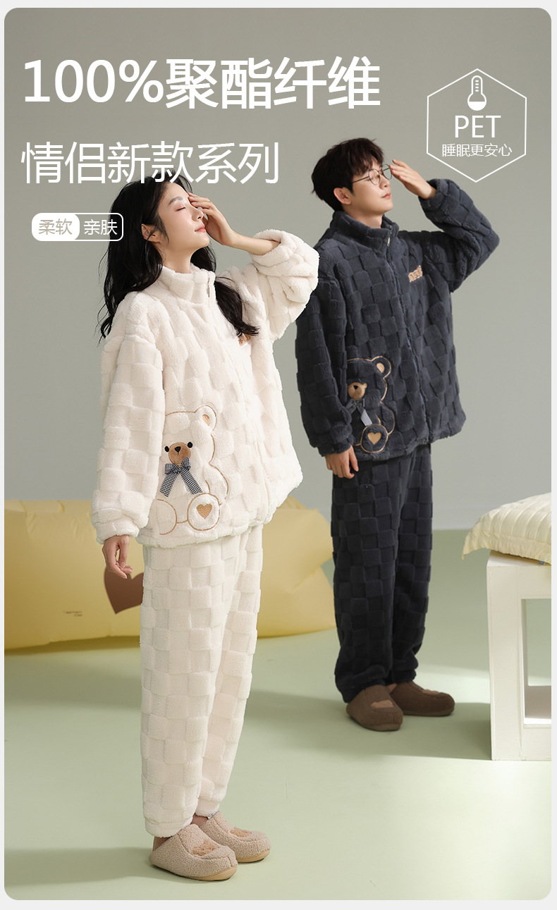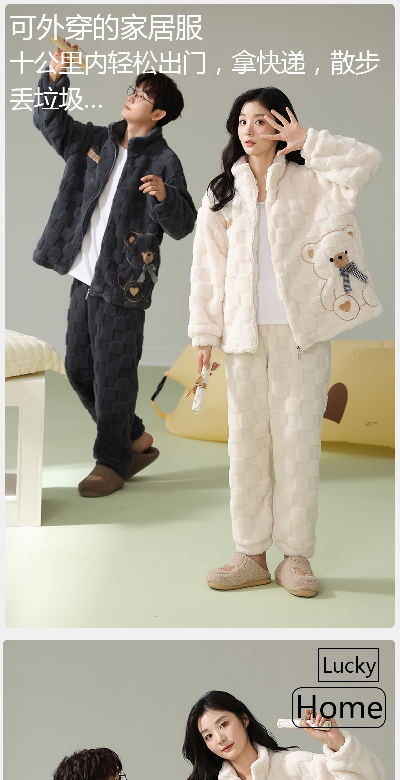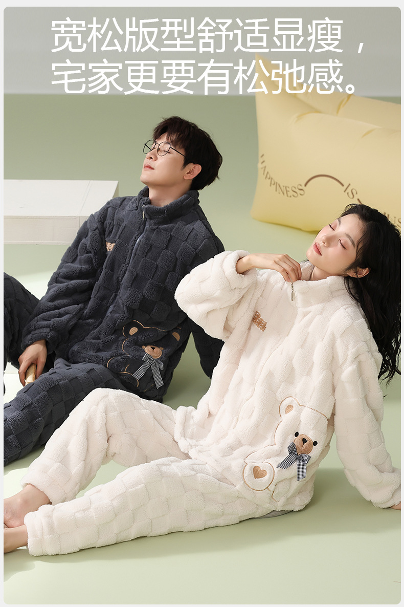[100% 폴리에스터] 커플 잠옷 여자의 산호 양털 가을과 겨울 두꺼운 기모 남자의 가정 의류 세트스토어 가기