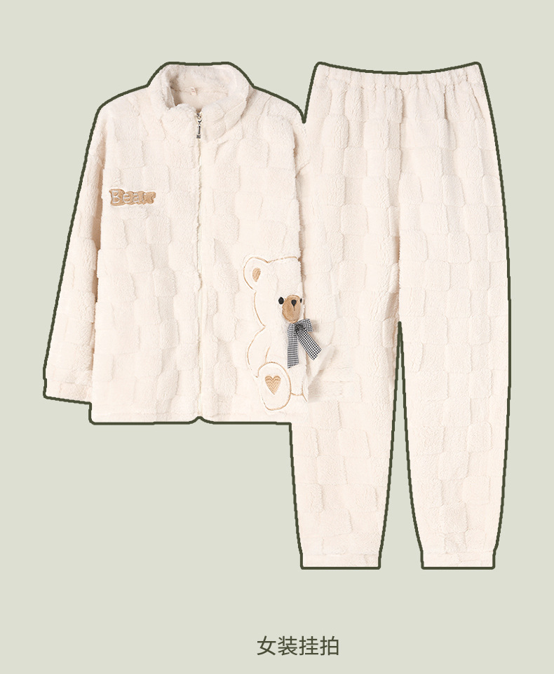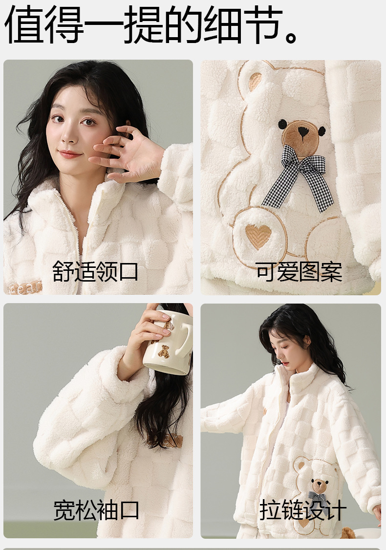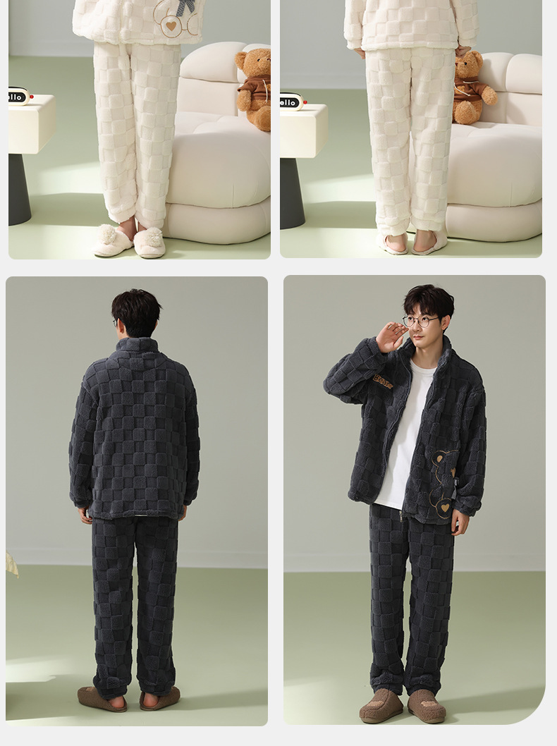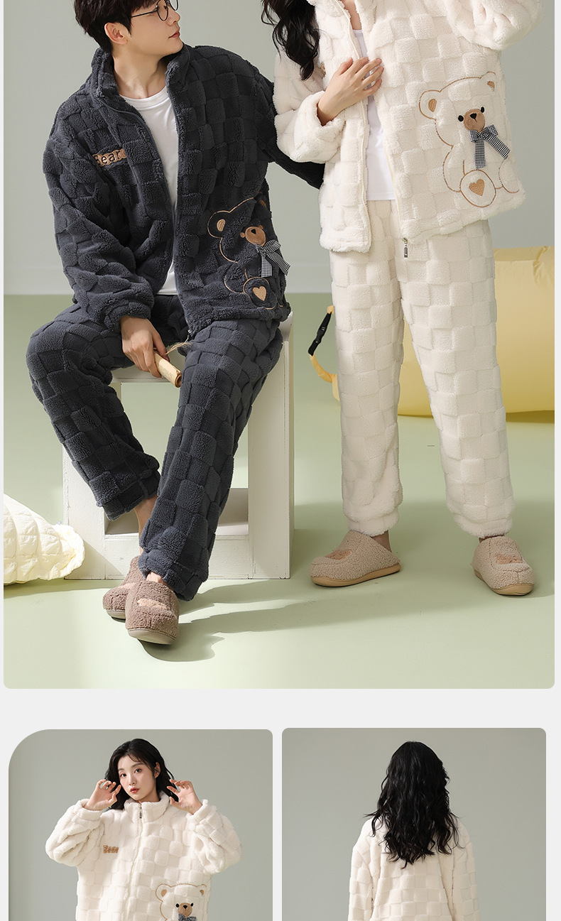 [100% 폴리에스터] 커플 잠옷 여자의 산호 양털 가을과 겨울 두꺼운 기모 남자의 가정 의류 세트스토어 가기