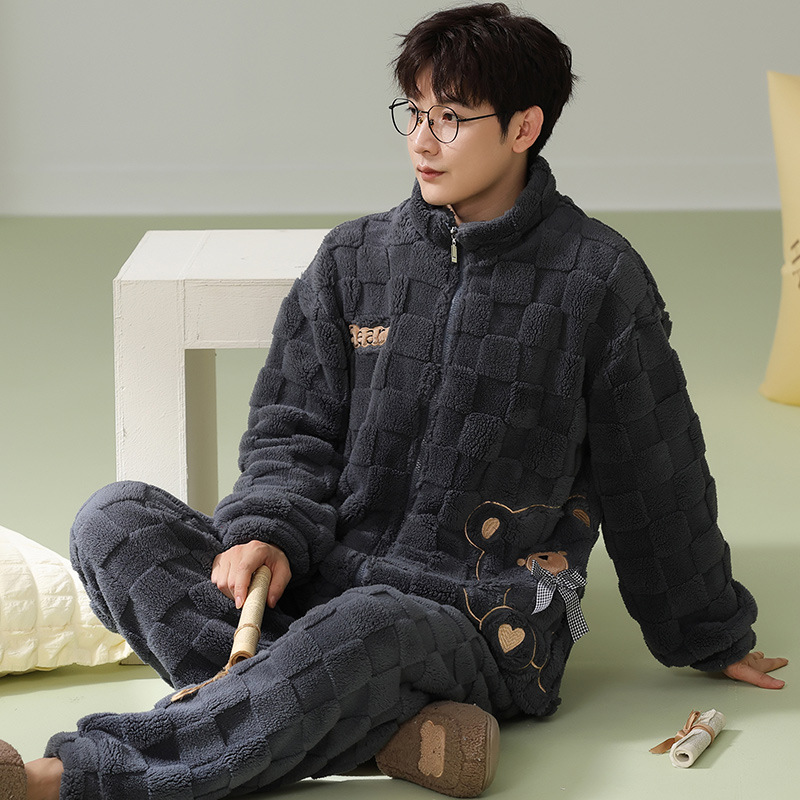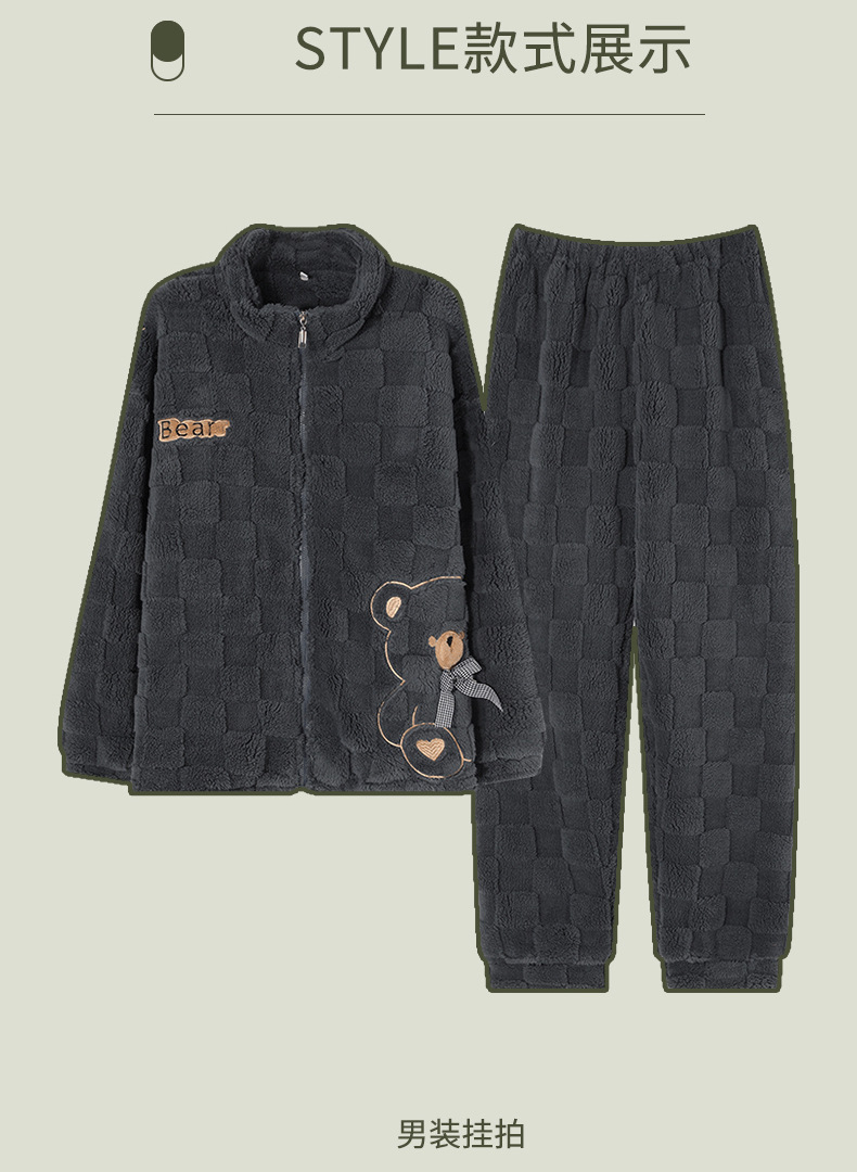 [100% 폴리에스터] 커플 잠옷 여자의 산호 양털 가을과 겨울 두꺼운 기모 남자의 가정 의류 세트