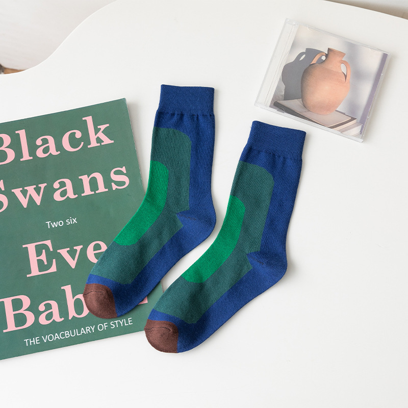한국 색상 매칭 파란색과 녹색 그라디언트 일본어 in 여성 양말 무지개 양말 중간 길이 양말 개인 틈새 디자인 순면 양말스토어 가기