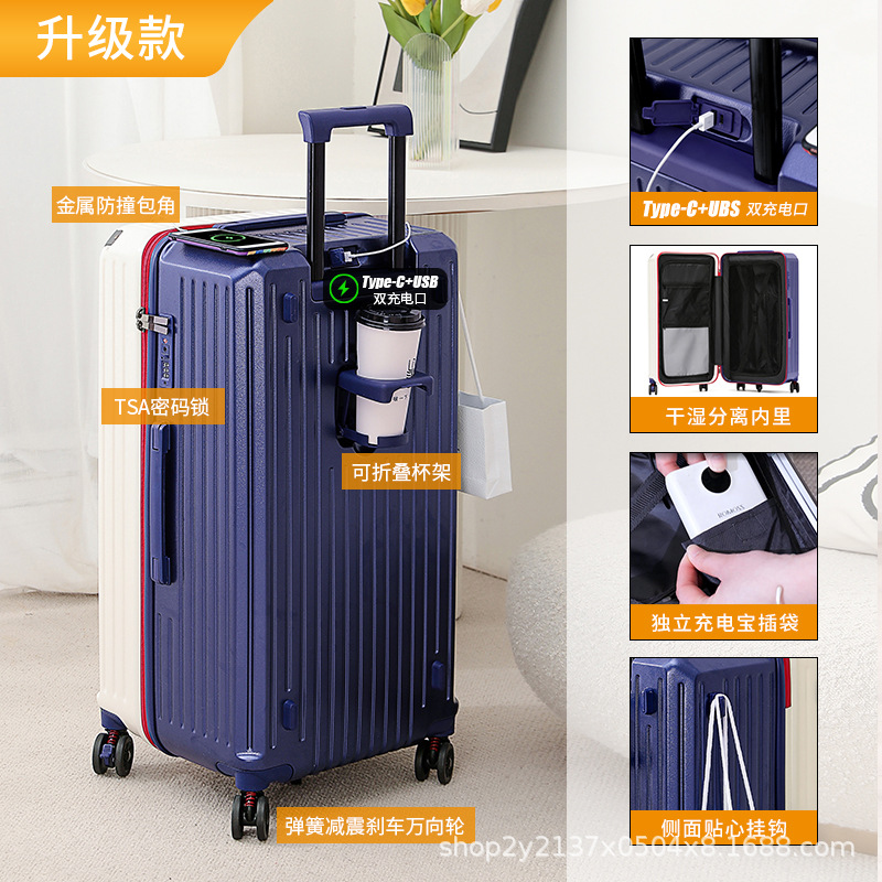 하이 퀄리티 수하물 케이스 대용량 트롤리 케이스 여성 5 륜 충격 흡수 브레이크 범용 휠 암호 여행 가방 남성스토어 가기