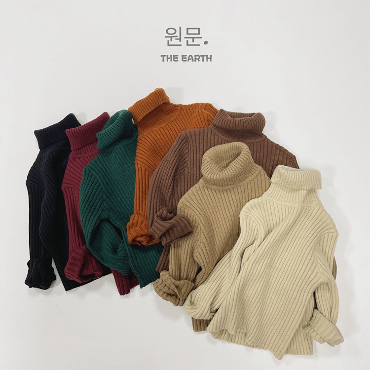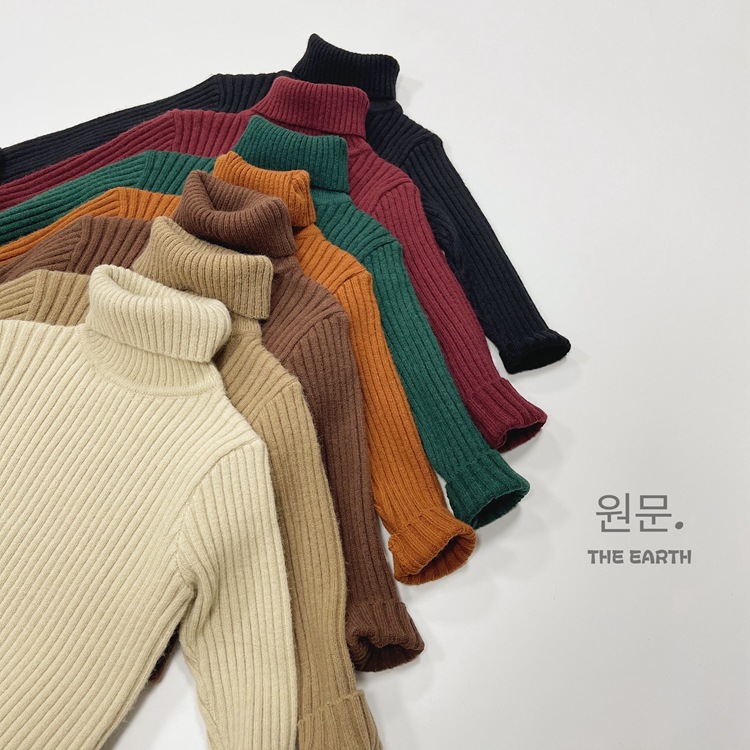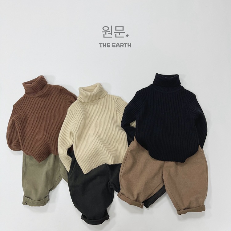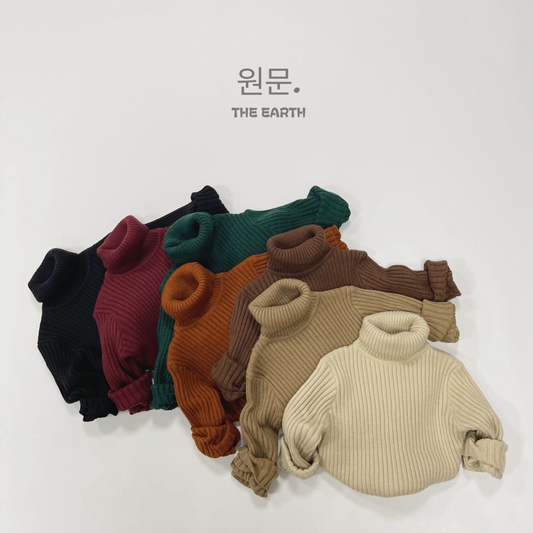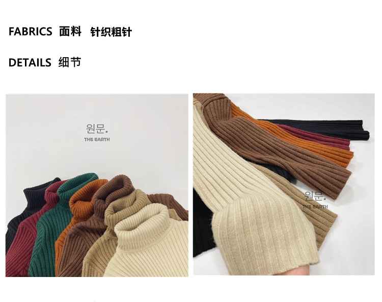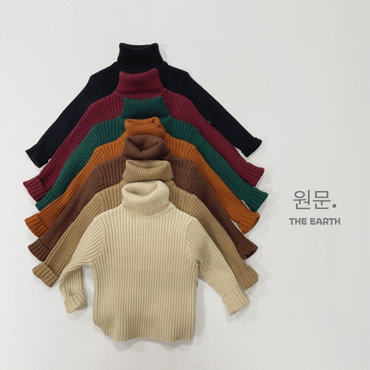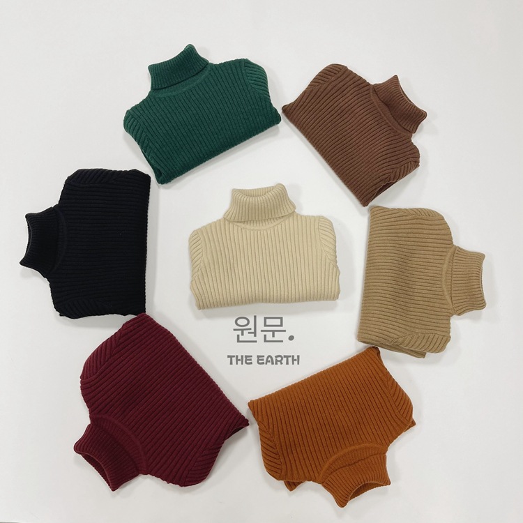 한국 어린이 터틀넥 스웨터 가을과 겨울 새로운 핏 스트립 단색 남성과 여성의 보물 슬림핏 니트 베이스 셔츠 따뜻한 스웨터