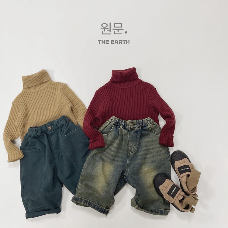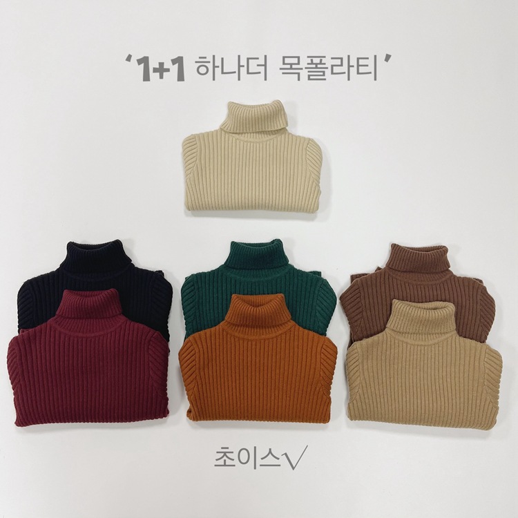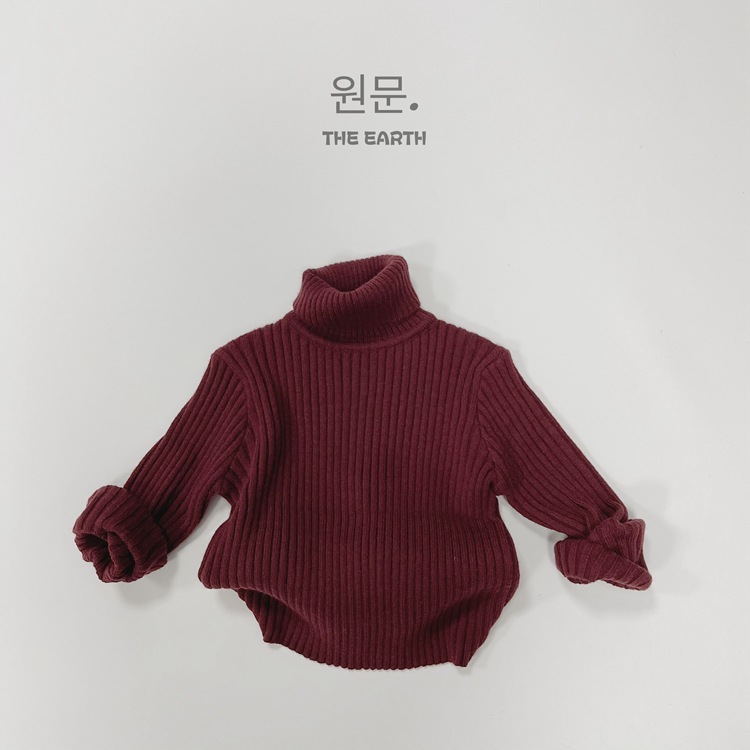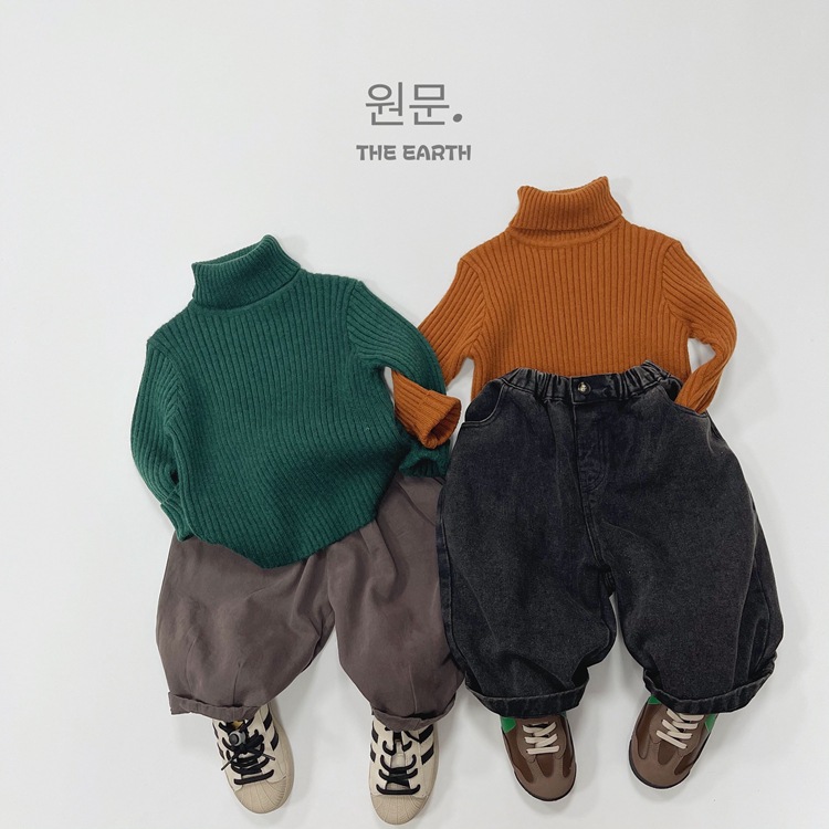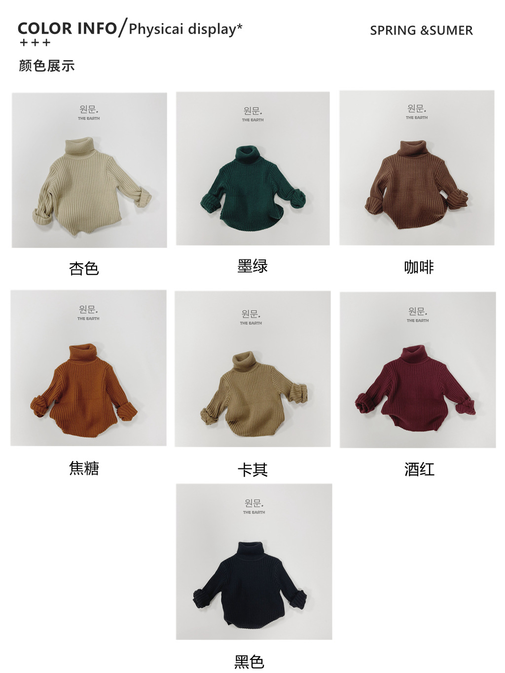 한국 어린이 터틀넥 스웨터 가을과 겨울 새로운 핏 스트립 단색 남성과 여성의 보물 슬림핏 니트 베이스 셔츠 따뜻한 스웨터