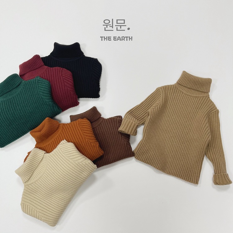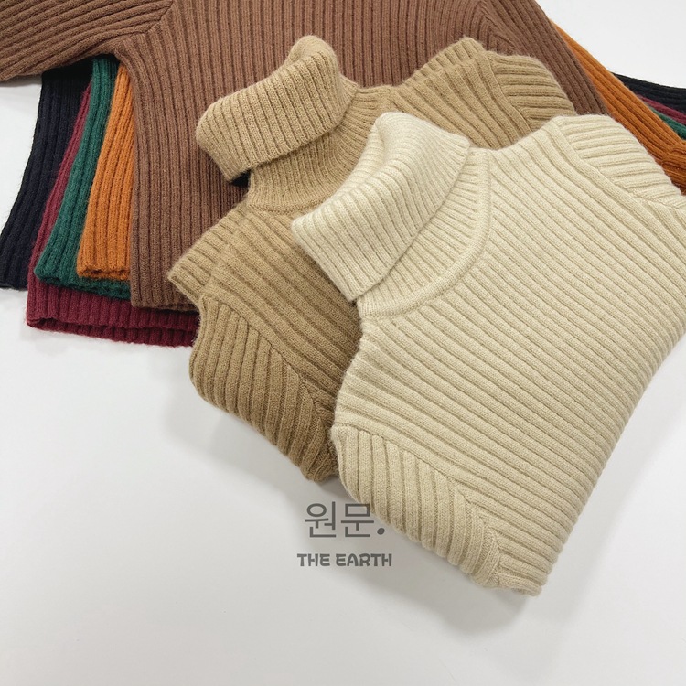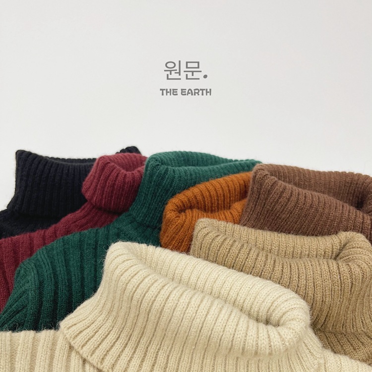 한국 어린이 터틀넥 스웨터 가을과 겨울 새로운 핏 스트립 단색 남성과 여성의 보물 슬림핏 니트 베이스 셔츠 따뜻한 스웨터스토어 가기