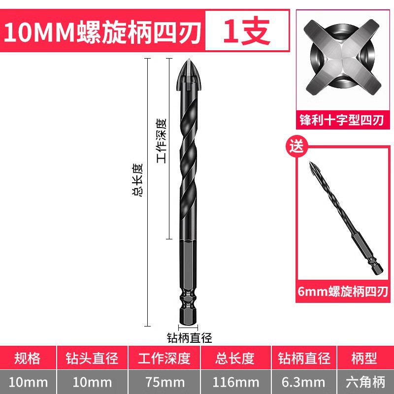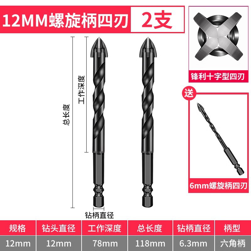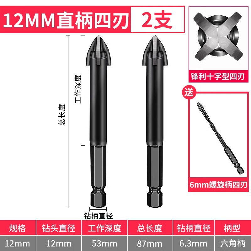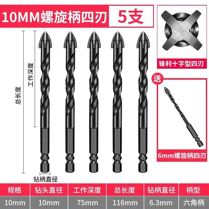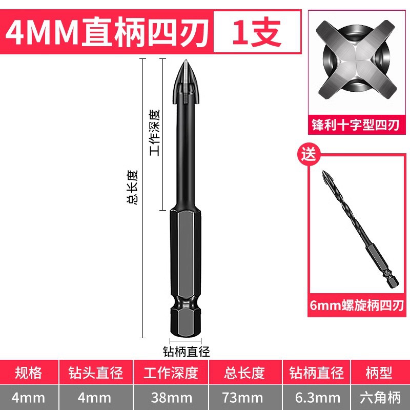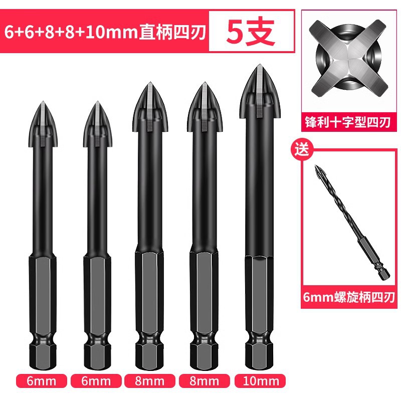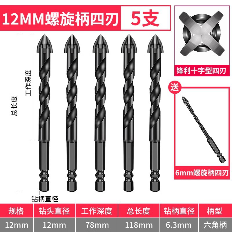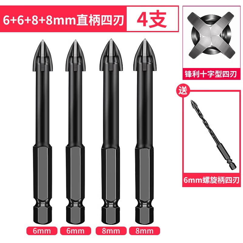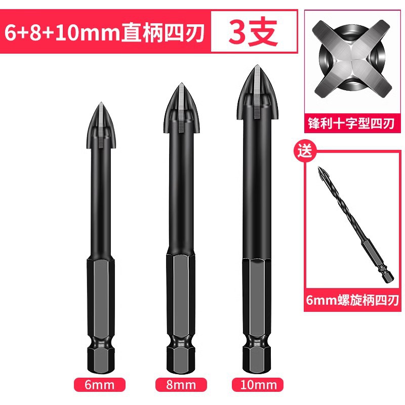 타일 드릴 콘크리트 드릴링 4 날 오버 로드 드릴 합금 삼각형 드릴 6mm 유리 시멘트 Daquan 핸드 드릴스토어 가기