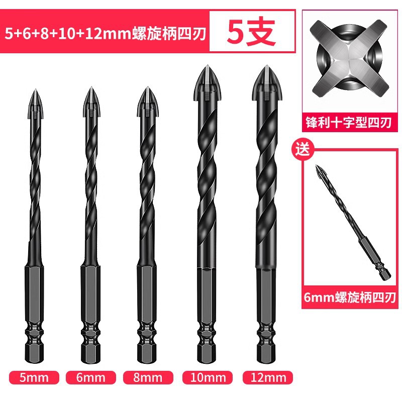 타일 드릴 콘크리트 드릴링 4 날 오버 로드 드릴 합금 삼각형 드릴 6mm 유리 시멘트 Daquan 핸드 드릴