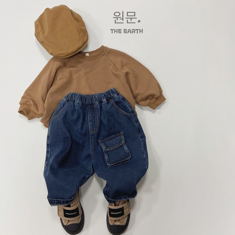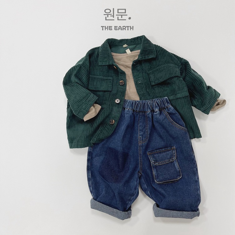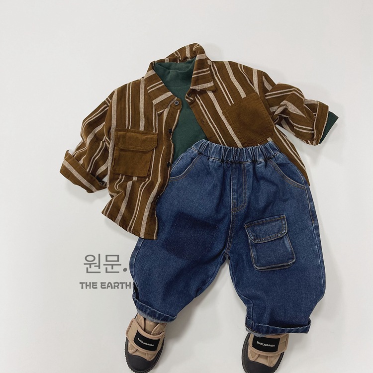 한국 스타일 작업복 데님 바지 어린이 가을 새로운 스타일 포켓 청바지 남자의 아기 캐주얼 데님 바지스토어 가기