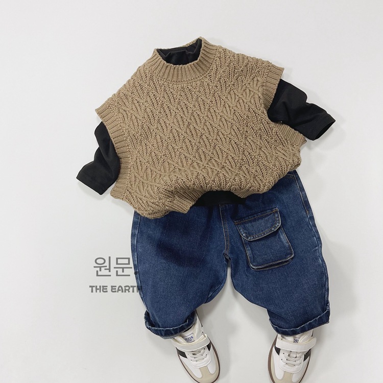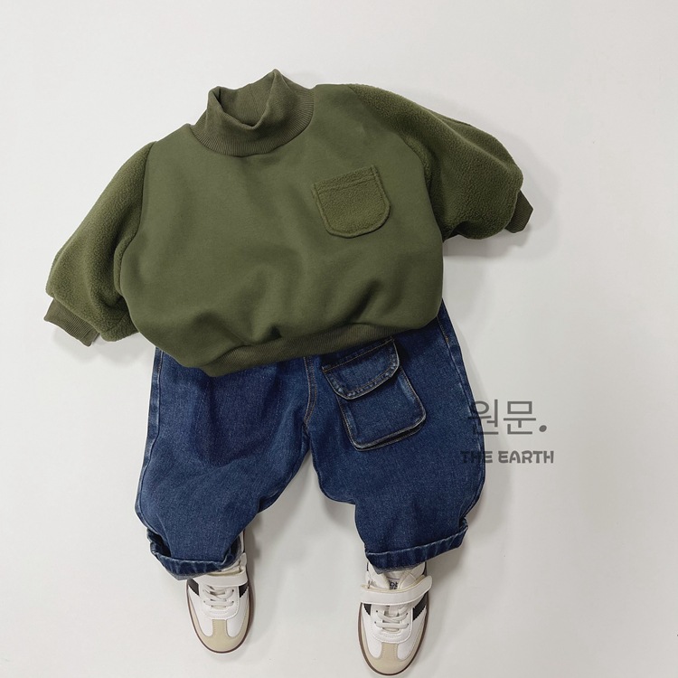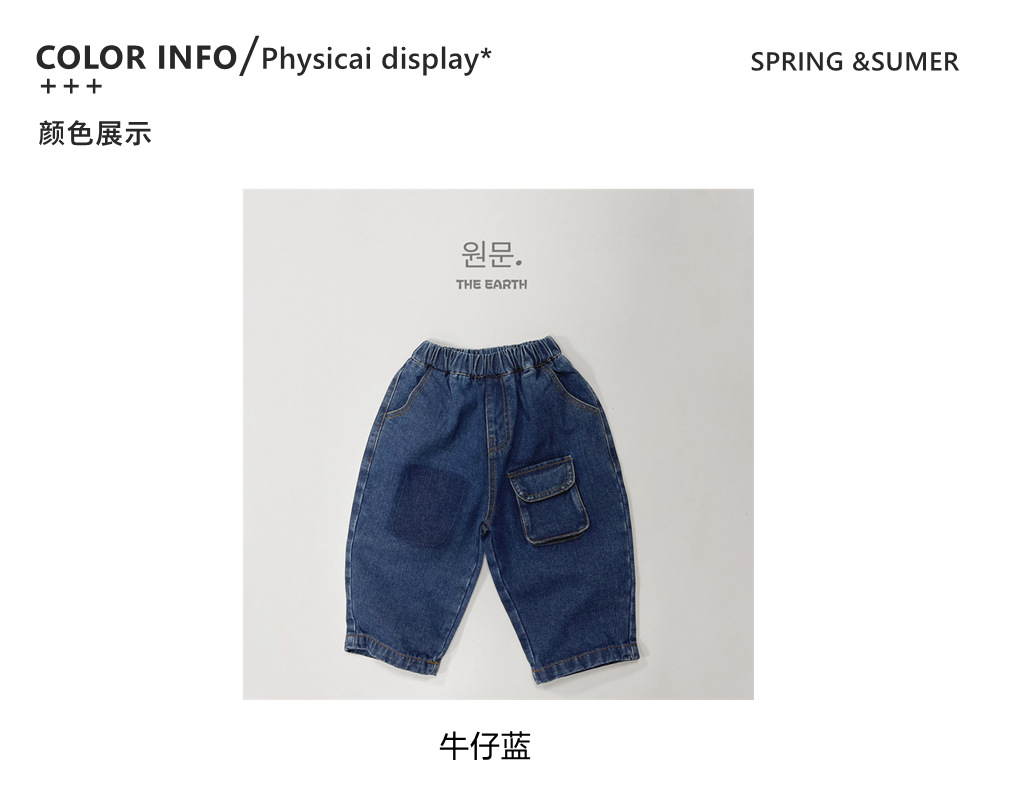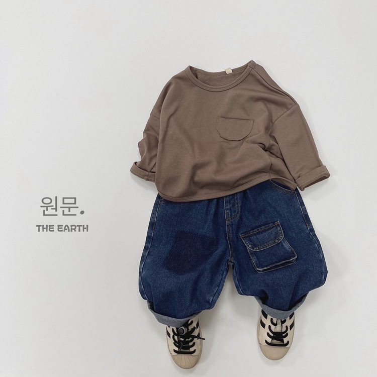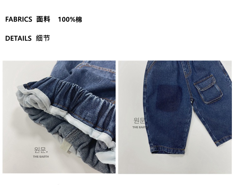 한국 스타일 작업복 데님 바지 어린이 가을 새로운 스타일 포켓 청바지 남자의 아기 캐주얼 데님 바지