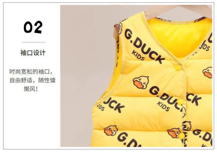 가을과 겨울에 소년과 소녀를위한 정품 노란 오리 어린이 다운 코튼 조끼스토어 가기