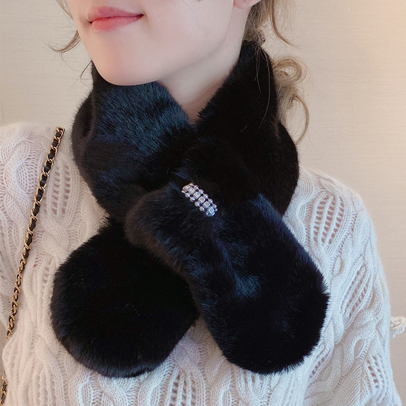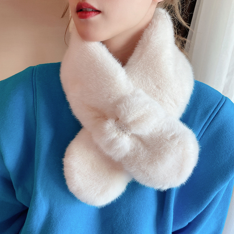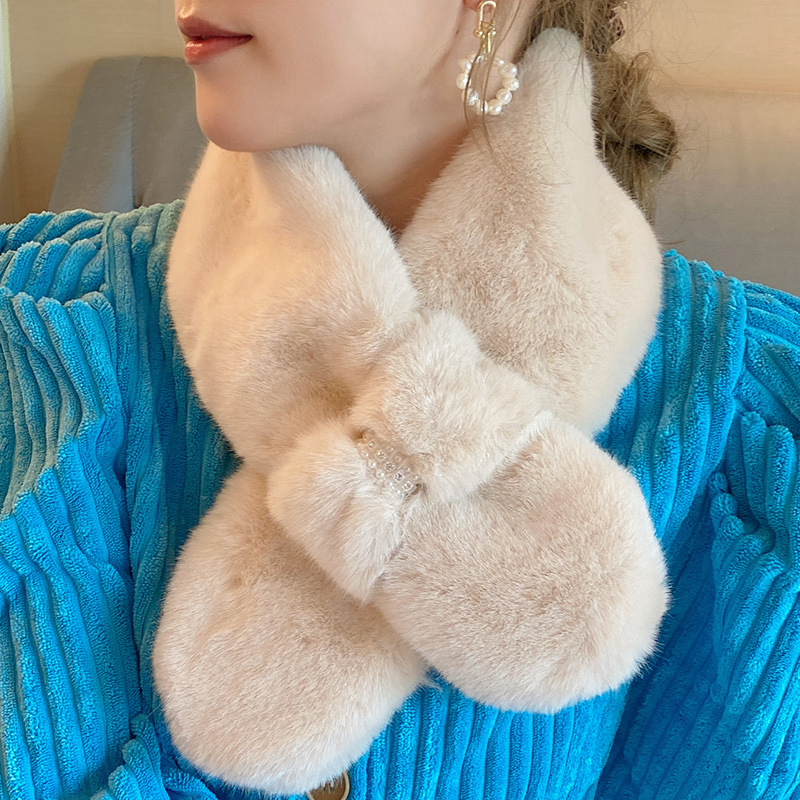 마오 마오 스카프 여성용 겨울 한국식 크로스 만능 스카프 렉스 토끼 머리 따뜻한 진주 모피 칼라 새로운 목 보호 스카프