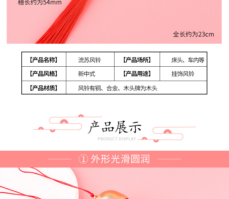 바람 벨 술 펜던트 새로운 중국 순수 구리 벨 텍스트 축복하는 펜던트 창조적 인 휴일 분위기 매달려 작은 선물