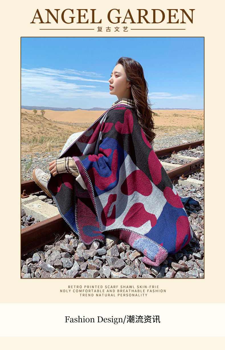 큰 목도리 개성을 벗어난 가을과 겨울 여행 사진 에스닉 스타일 인쇄 레저 패션 모든 경기 이중 목적 스카프 케이프