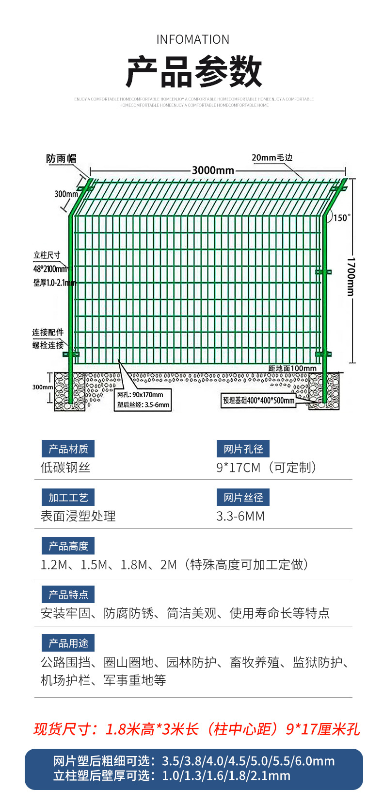 • 경질 플라스틱 1.8*3m 그물 두께 4.mm + 1.5mm 기둥 보강