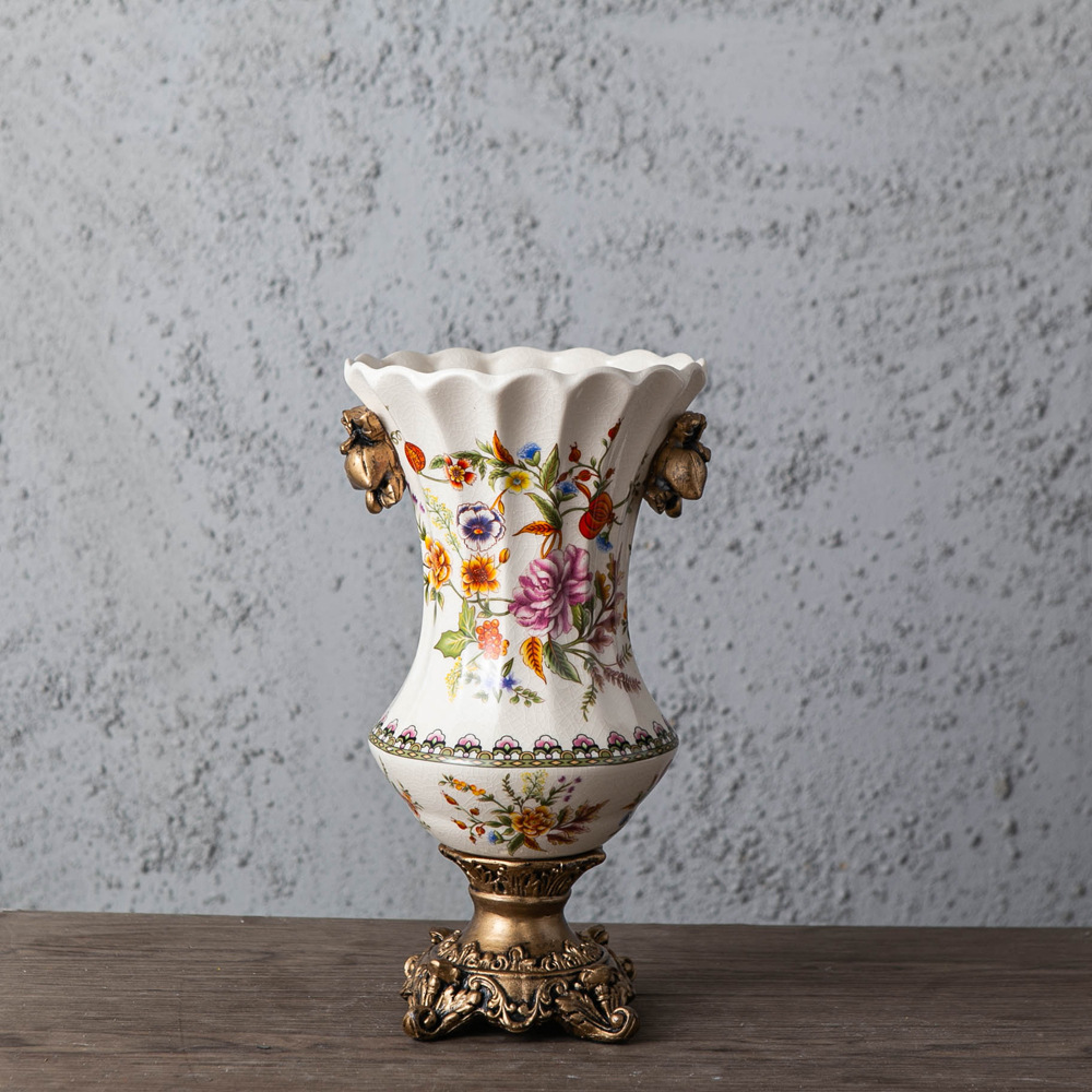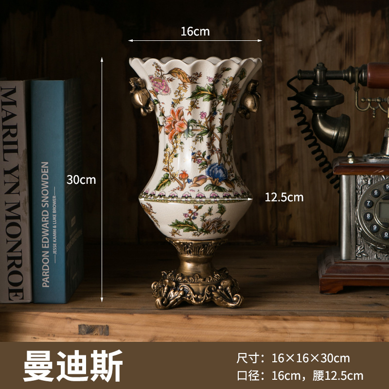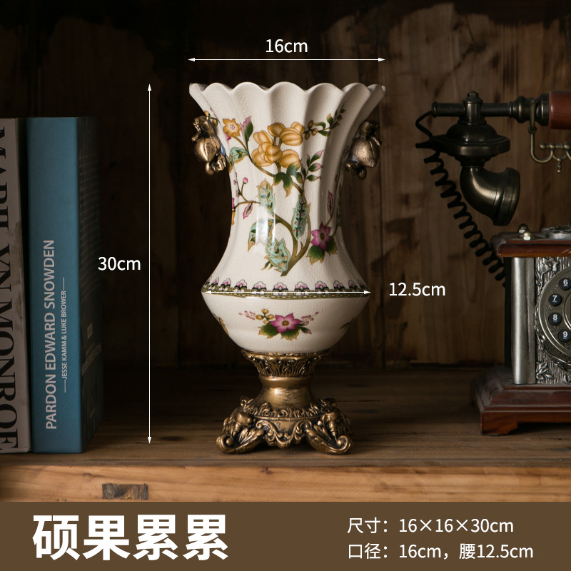 미국식 레트로 크랙 세라믹 꽃병 화분 창의적인 홈 장식품 데스크탑 유럽식 높은 받침대 이중 손잡이