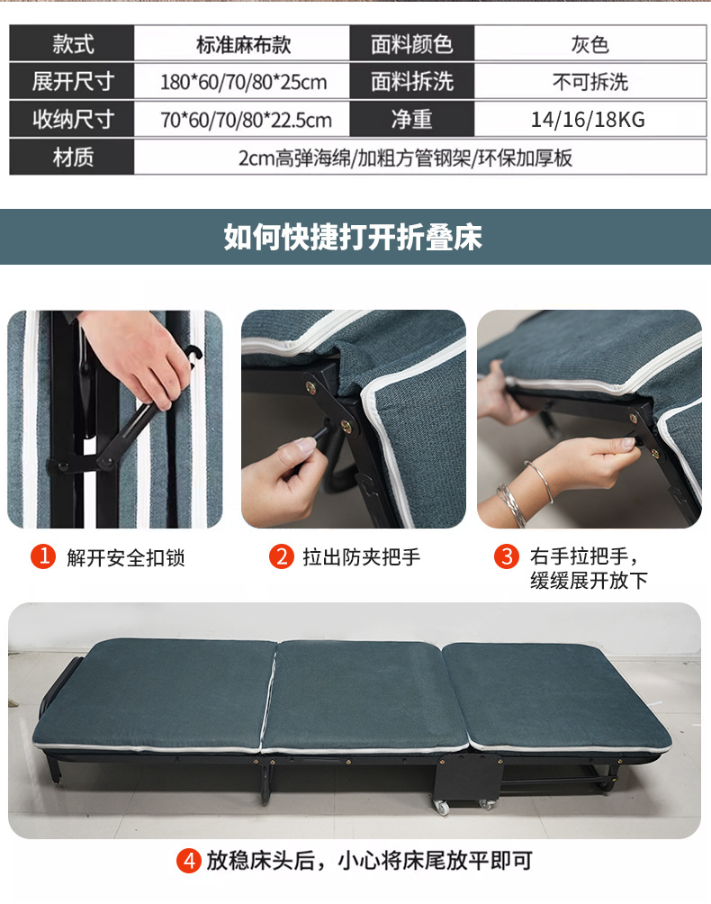 접이식 침대 점심 시간 접이식 침대 싱글 점심 시간 행진 침대 3 배 접이식 침대 사무실 접이식 침대 싱글