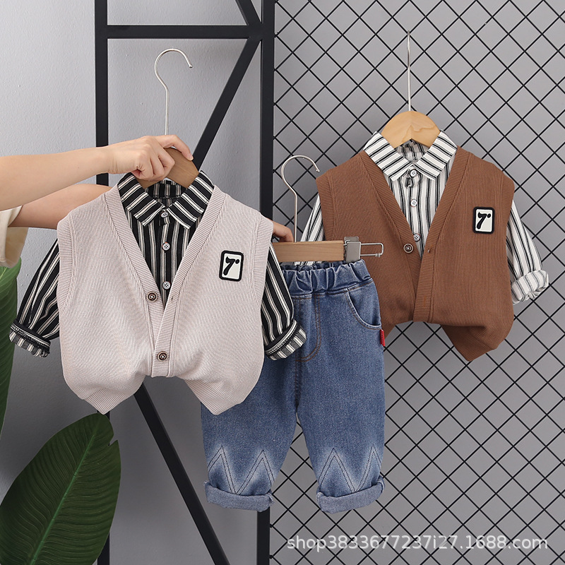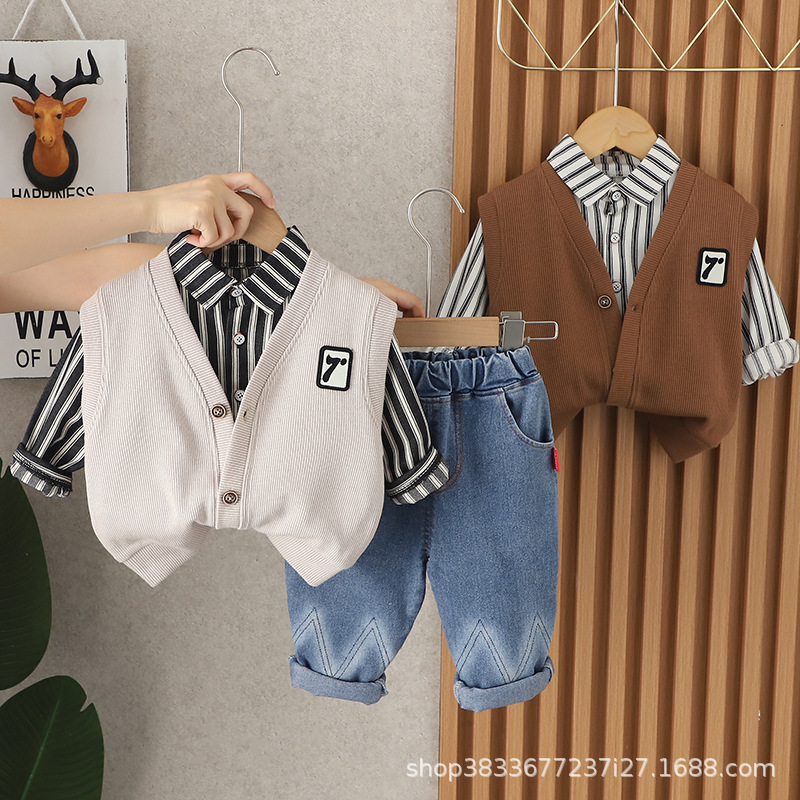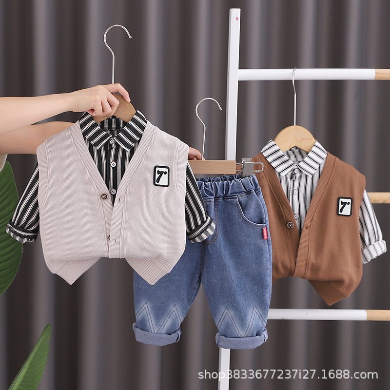 어린이 가을 세트 2023 새 소년 한국 스타일 7 단어 3 피스 세트 소년 서양식 옷 어린이 공장 직접스토어 가기