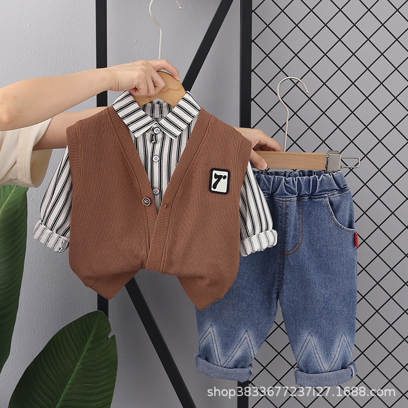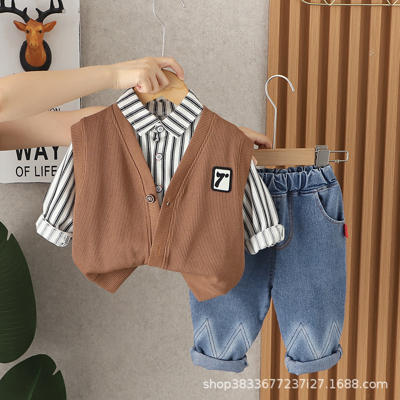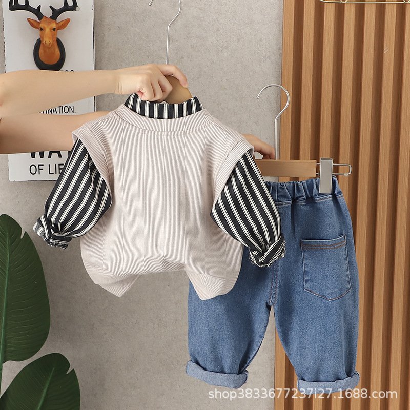 어린이 가을 세트 2023 새 소년 한국 스타일 7 단어 3 피스 세트 소년 서양식 옷 어린이 공장 직접