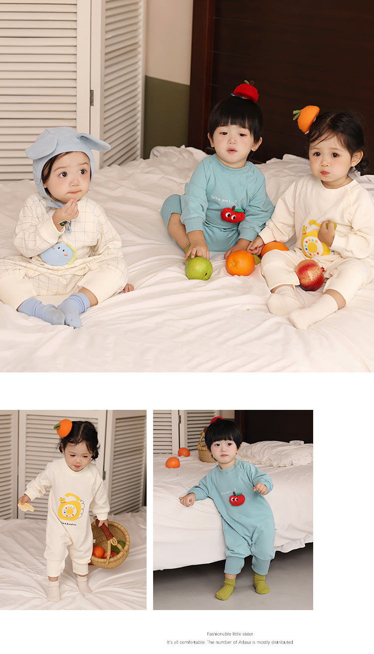 Suka 아기 늦은 가을 보름달 남성과 여성 아기 한국어 만화 스테레오 니트 등반 세트 신생아 겉옷 점프 슈트스토어 가기