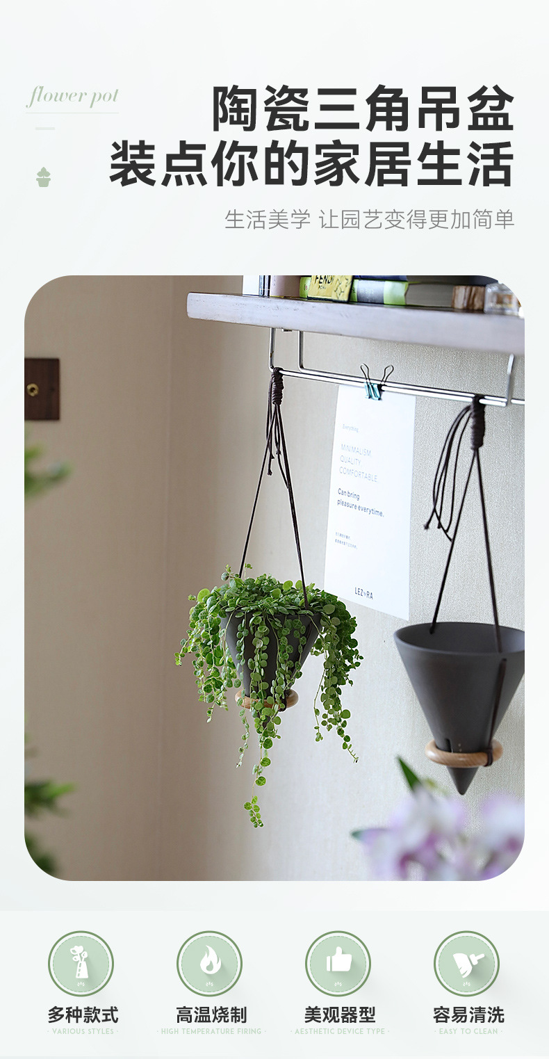 북유럽 스타일 세라믹 걸이형 화분, 벽걸이 화분, 행잉 화분, 화분 걸이, 화분 장식