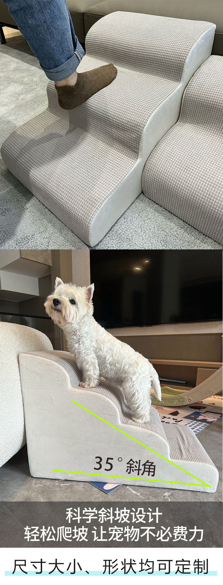 애완 동물 계단 개 계단 침대 옆 소파 슬로프 등반 사다리 미끄럼 방지 이동식 및 세척 가능한 노인 개 침대 보조 사다리스토어 가기