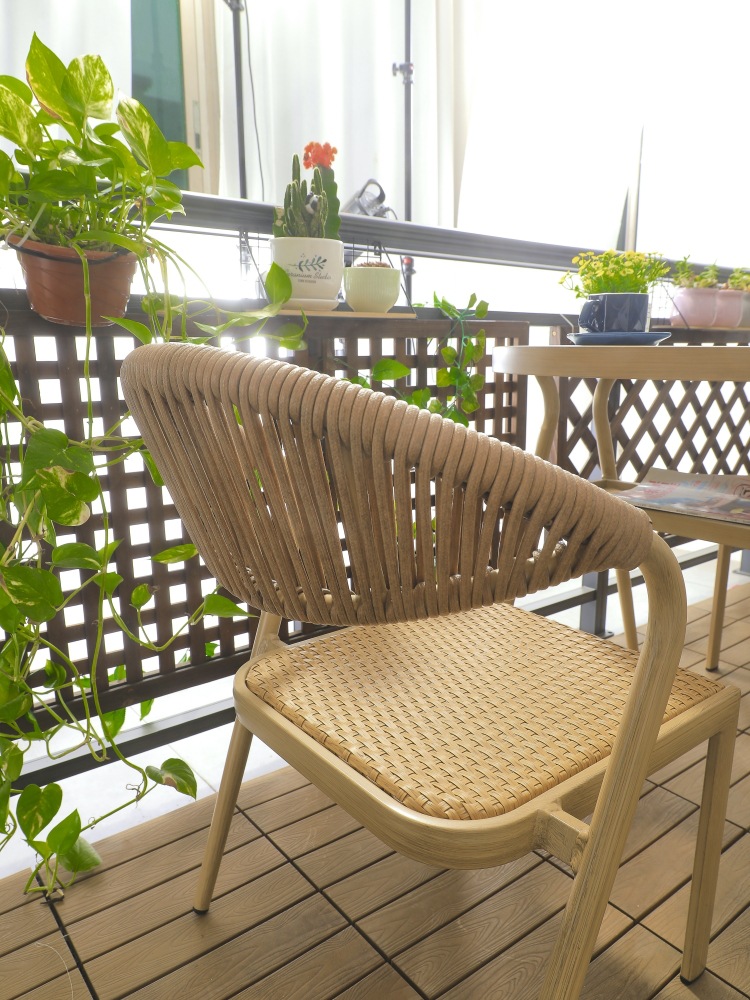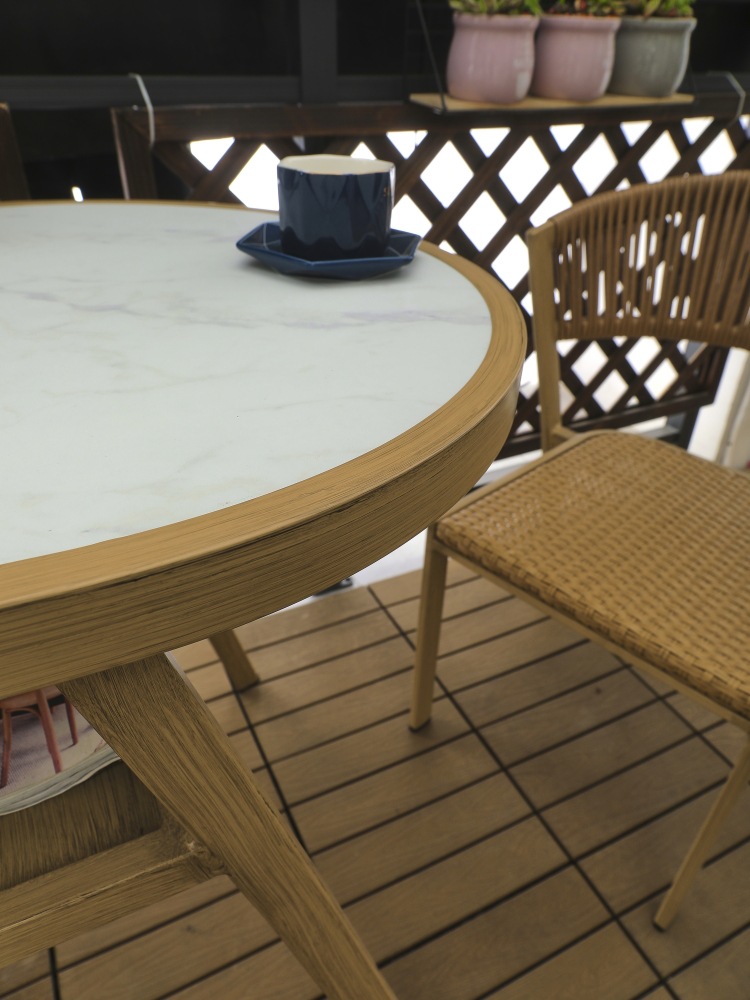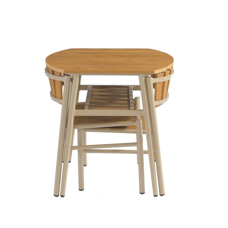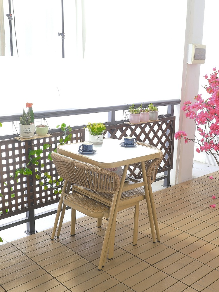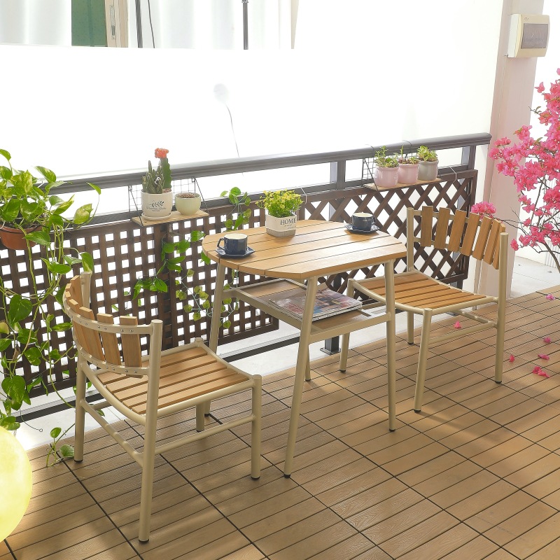 안뜰 정원 테라스 발코니 야외 카페 레저 플라스틱-목재 방수 자외선 차단 수납 테이블 및 의자 3 종 세트