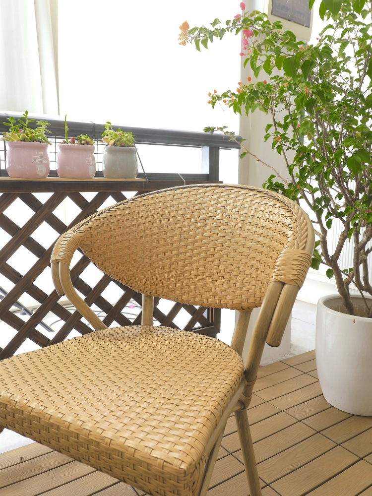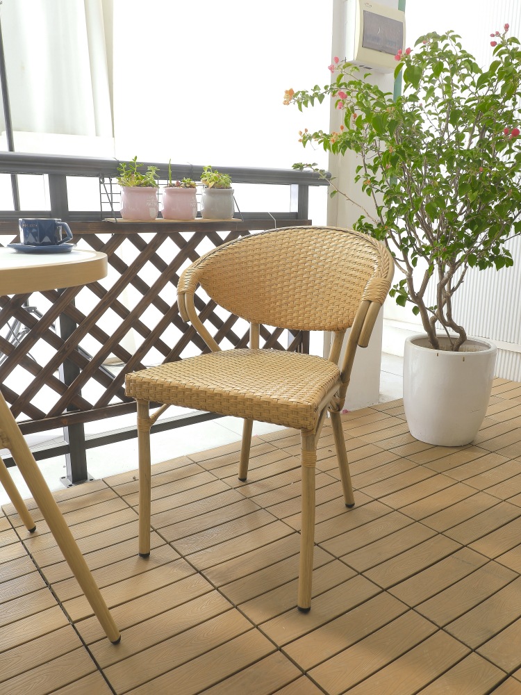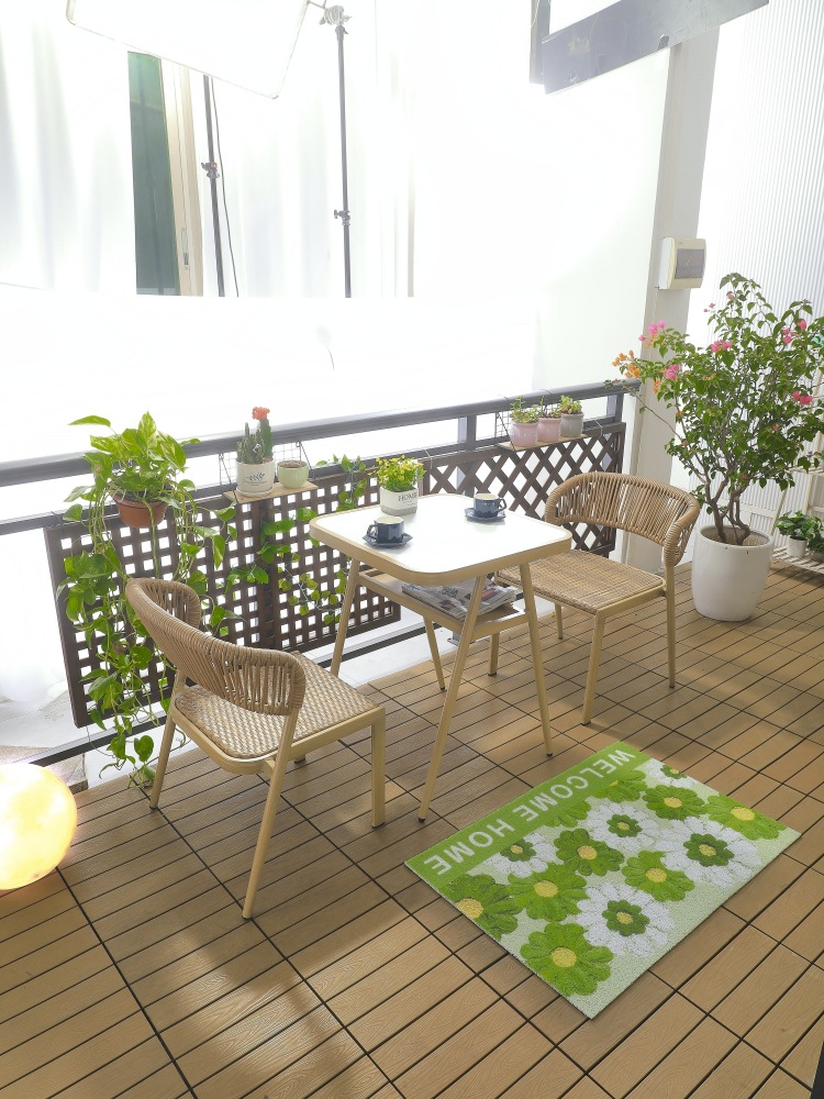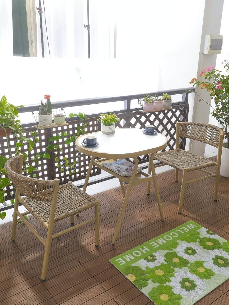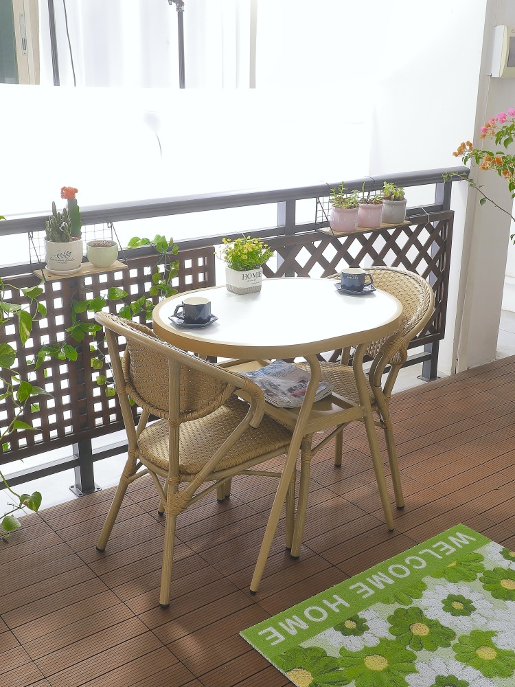 안뜰 정원 테라스 발코니 야외 카페 레저 플라스틱-목재 방수 자외선 차단 수납 테이블 및 의자 3 종 세트스토어 가기
