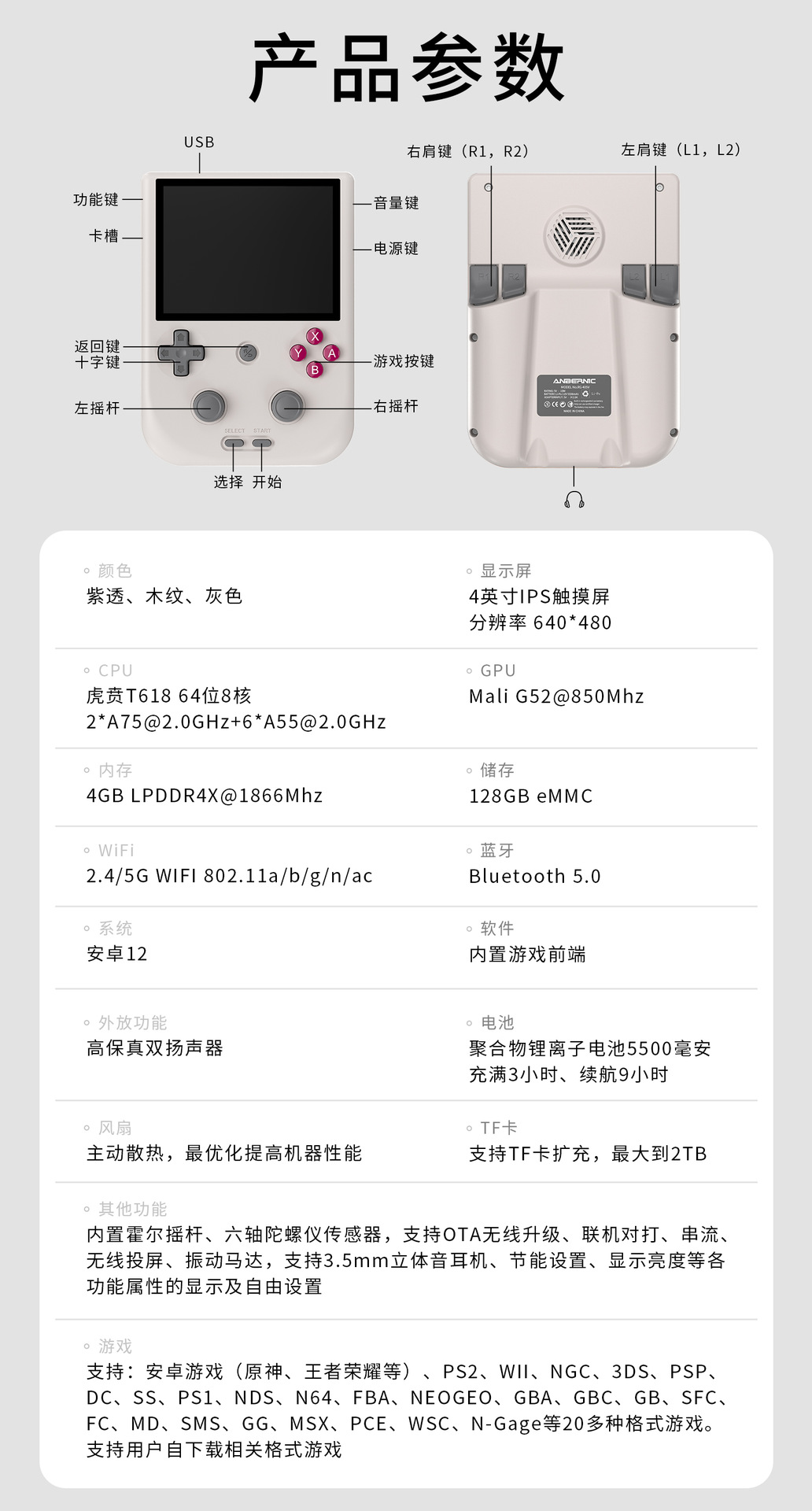ANBERNIC ambernik RG405V 휴대용 알루미늄 합금 안드로이드 휴대용 PS2WiiNGCPSP 게임 콘솔