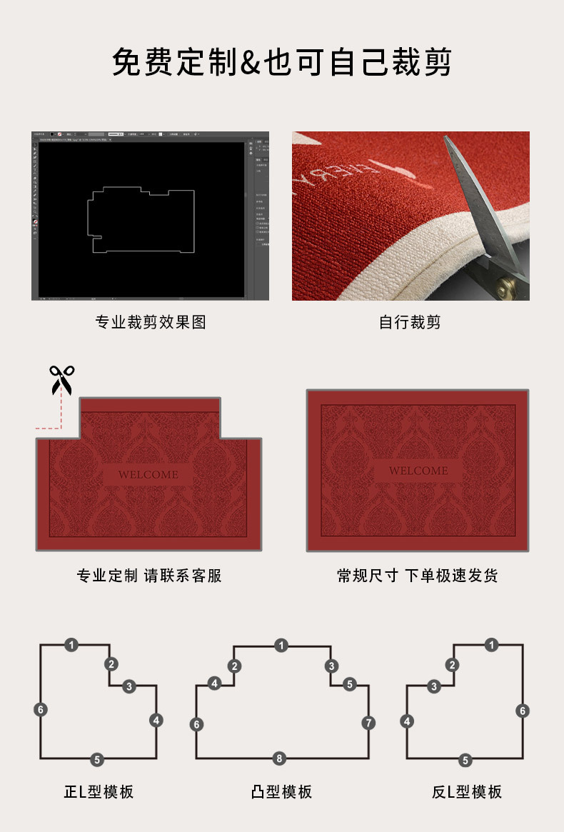 레드 축제 입구 바닥 매트 홈 입구 미끄럼 방지 발 매트 입구 도어 매트 절단 고급 카펫스토어 가기