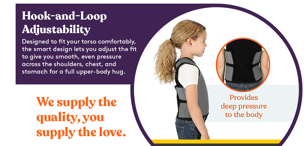 5、治疗师推荐 – 这款感官压缩背心由专业人士精心设计,并经治疗师批准,适用于因注意力不集中、自闭症或其他感官挑战而苦苦挣扎的儿童。