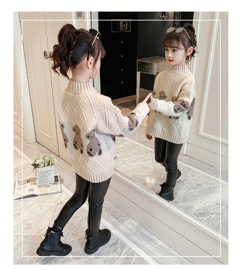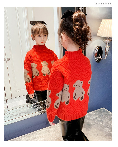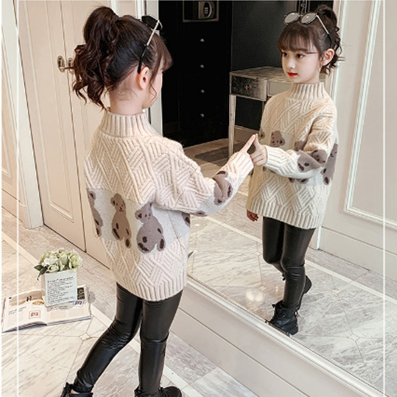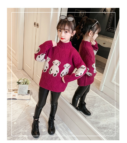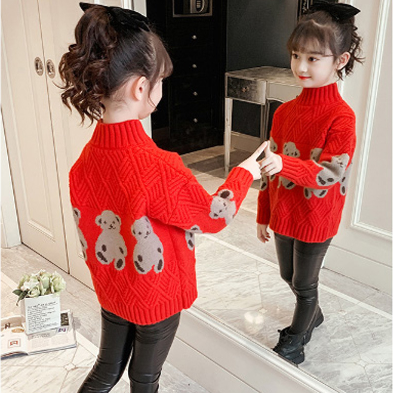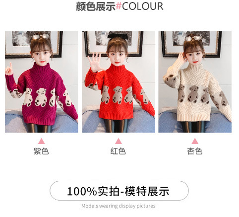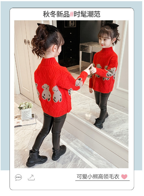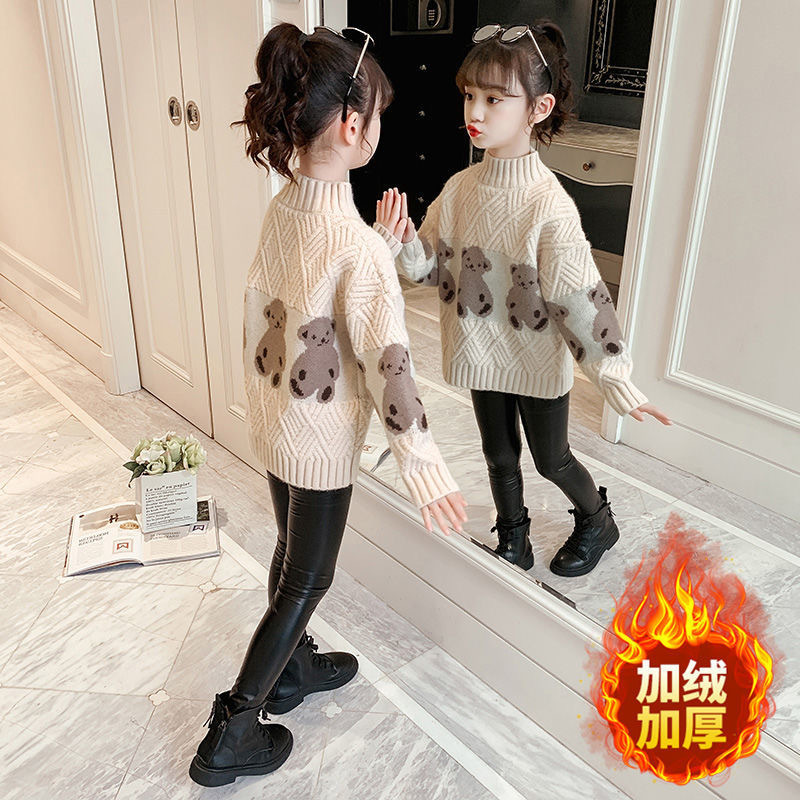 여아용 스웨터, 벨벳 소재, 두꺼운, 가을 겨울 신상, 세련된 스타일, 중대형 아동용 하프 터틀넥 니트, 따뜻한 한국 스타일스토어 가기
